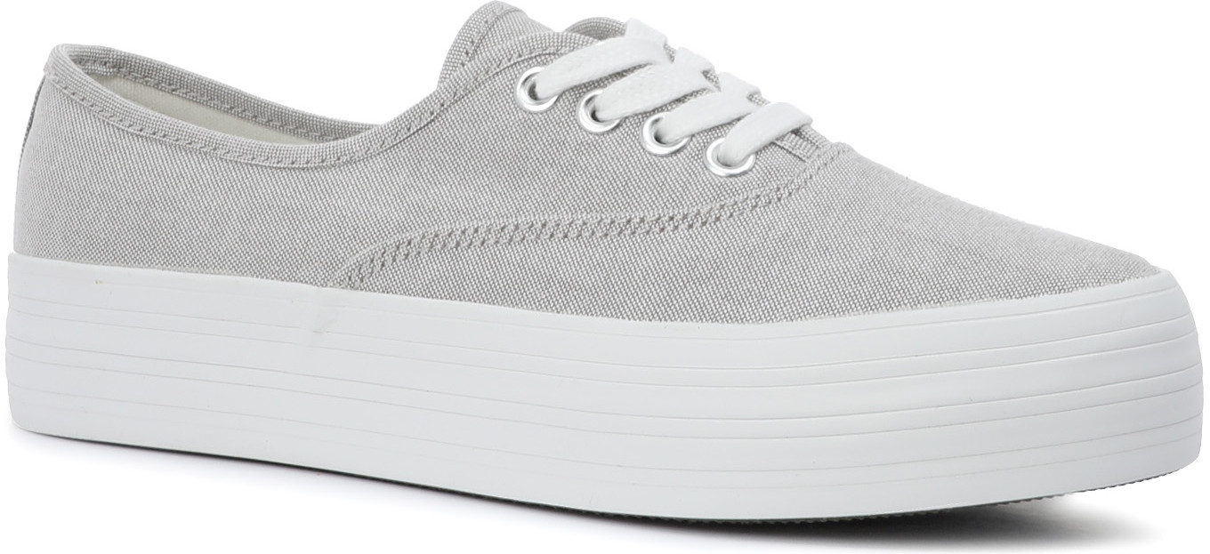 Очень качественные кеды. Ткань плотная, цвет серовато - бежевый.