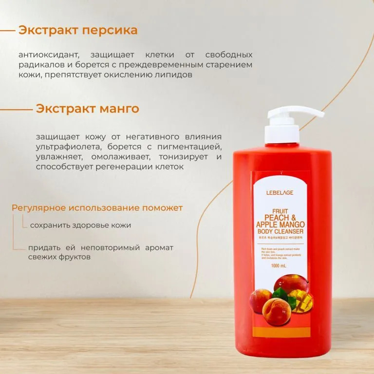 Lebelage Гель для душа с экстрактом персика и манго «Fruit Peach and Apple Mango Body Cleanser»