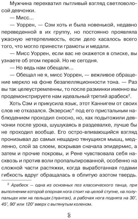 Птицы-странникиВ данный момент этот товар отсутствует в продаже. Возможно, у нас найдется аналогичный или похожий товар здесь. Рене — ученица балетной школы. С детства она мечтала стать прима-балериной в крупнейшем театре Нью-Йорка. Стертые до кровавых мозолей ноги, изнуряющие диеты, занятия до седьмого пота — все это не более, чем пустяк по сравнению с тем, что все вокруг тычут в нее пальцем и смеются, ведь Рене — уродина. |