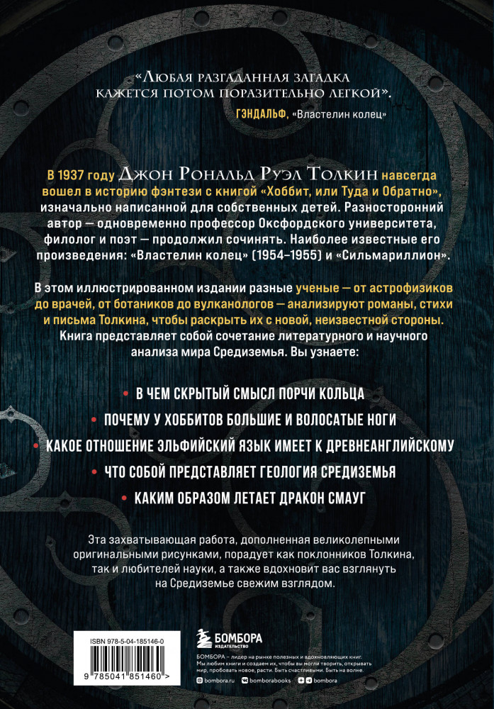 Эта захватывающая работа, дополненная великолепными оригинальными рисунками, порадует как поклонников Толкина, так и любителей науки, а также вдохновит вас взглянуть на Средиземье свежим взглядом. |