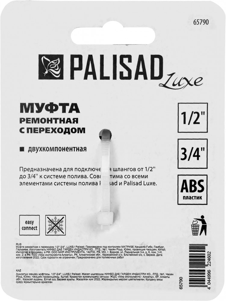 Ремонтная муфта Palisad Luxe с переходом 1/2""-3/4″" позволяет создать оросительную систему из шлангов разного размера. С помощью муфты можно удлинить линию для полива больших территорий.