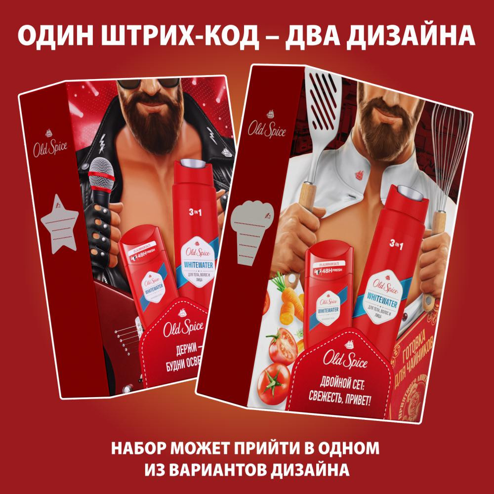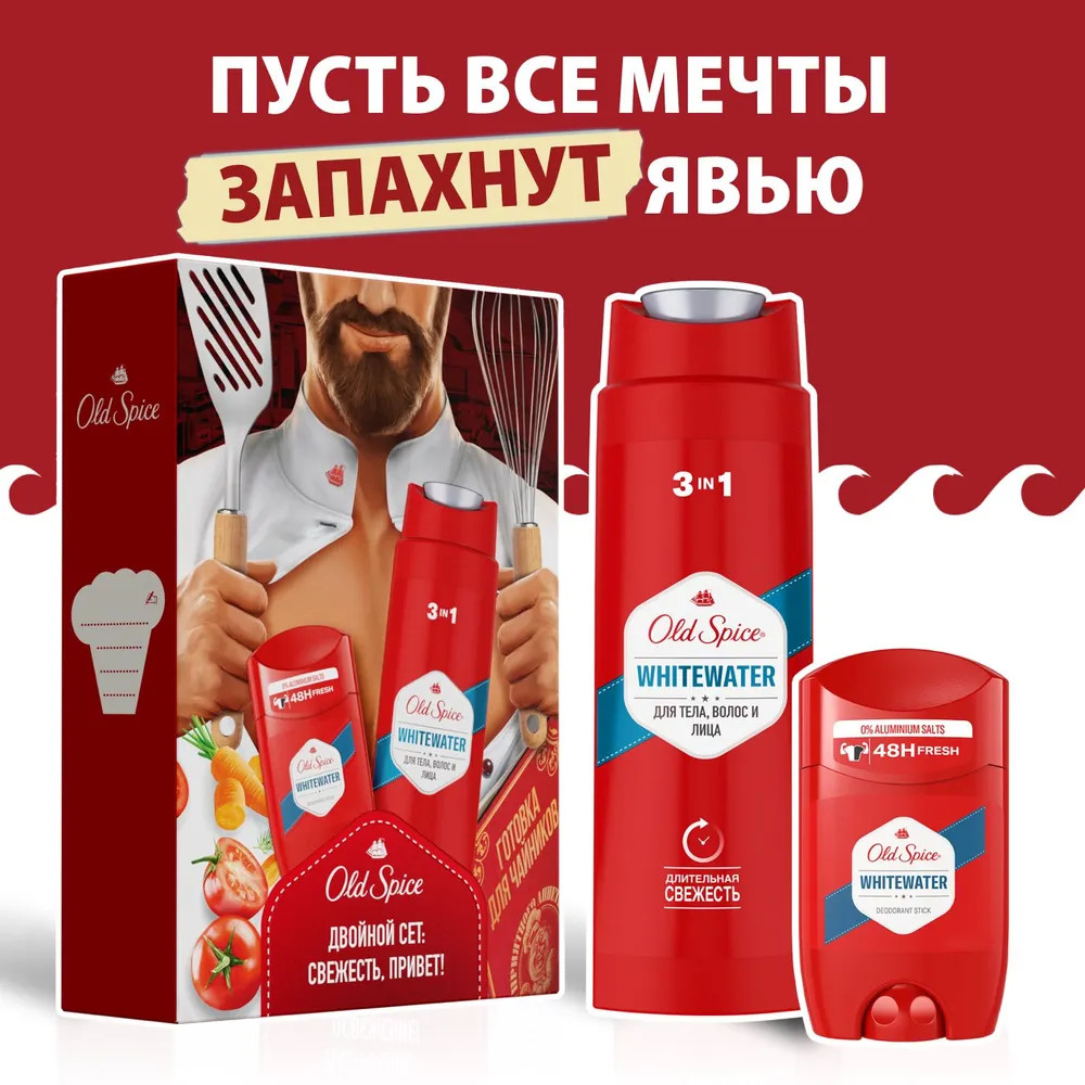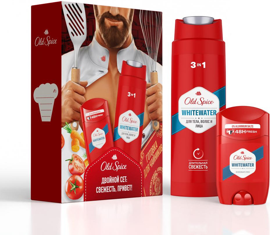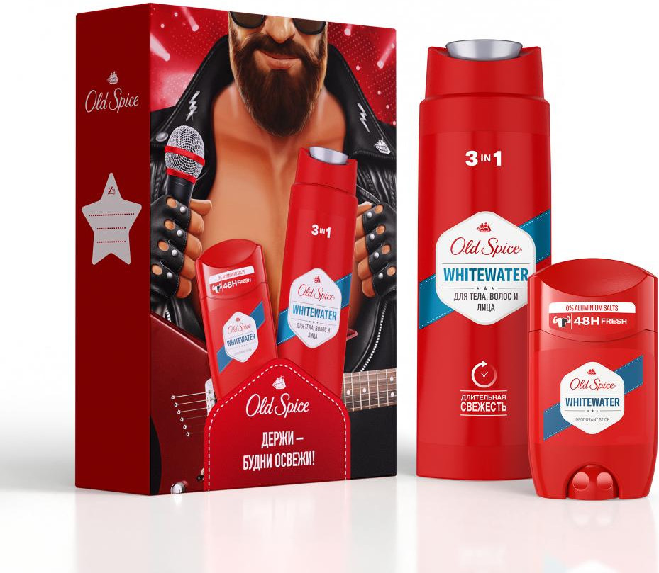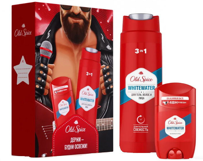 Old Spice Набор подарочный мужской «WhiteWater»В данный момент этот товар отсутствует в продаже. Возможно, у нас найдется аналогичный или похожий товар здесь. Слышите запах? Запах уверенного в себе мужчины. А сейчас? Если всё еще не слышите, набор Old Spice (Олд Спайс) Whitewater – именно то, что нужно вашему мужчине. Мужской набор Old Spice Whitewater включает в себя гель для душа + шампунь 3в1 250 мл и дезодорант-стик 50 мл. Ничего лишнего. Мужественная классика. Как фильмы из 90-х. Освежающая пена геля для душа, как волной, смоет всё лишнее, а твёрдый дезодорант с верхними нотами лимона и лайма даст заряд свежести на целый день и поможет мужчине быть уверенным в каждом шаге, в каждом выдохе и вдохе. Разжигать или тушить пожары, — с Old Spice Whitewater мужчина может делать что захочет. |
