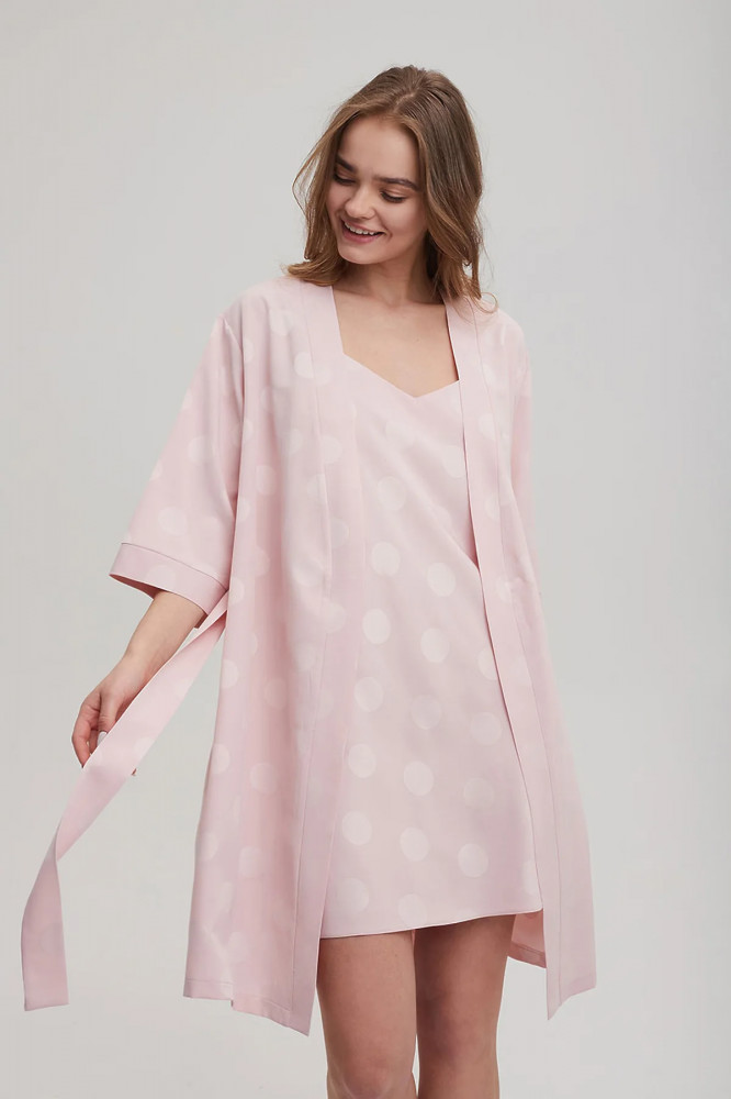 Пеньюар женский из серии «Пробуждение» от Milavitsa. Длина рукава ¾, на запах, с поясом. Выполнен из текстильного вискозного полотна.