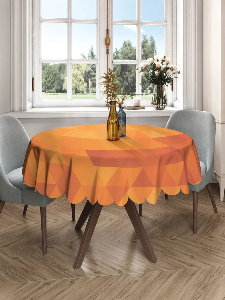 Скатерть на стол — незаменимая деталь для создания уюта и стиля вашей кухни. Круглая скатерть представлена в широком ассортименте дизайнерских принтов, что позволяет подобрать изделие не только для ежедневного использования, но для семейных и тематических праздников. Круглая скатерть изготовлена из прочной и износостойкой ткани сатен, плотностью 175 гр/кв.м, состоящей из волокон 100% полиэстера. Принт нанесен на ткань методом сублимационной печати, благодаря чему цвет и качество изображения сохраняют первоначальный вид, даже спустя множество стирок.
