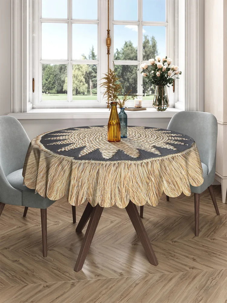 Скатерть на стол — незаменимая деталь для создания уюта и стиля вашей кухни. Круглая скатерть диаметром 150 см представлена в широком ассортименте дизайнерских принтов, что позволяет подобрать изделие не только для ежедневного использования, но для семейных и тематических праздников. Круглая скатерть изготовлена из прочной и износостойкой ткани, состоящей из волокон 100% полиэстера. Принт нанесен на ткань методом сублимационной печати, благодаря чему цвет и качество изображения сохраняют первоначальный вид, даже спустя множество стирок.