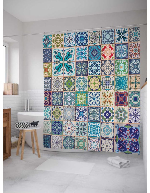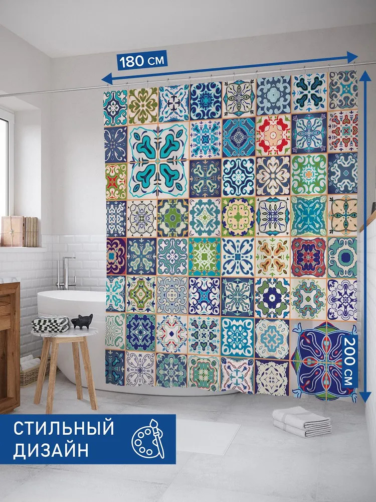 Серия: Фантазийный ручей Шторка для ванной 180 × 200 см выполнена из мягкого и приятного на ощупь высококачественного материала «Сатен» (100% полиэстер) плотностью 80 г/м. Изделие обработано водоотталкивающей пропиткой, благодаря чему защищает мебель от брызг и влаги. Штора для ванной и душа тканевая, не нуждается в утяжелителях и магнитах. Ткань прекрасно расправляется под собственным весом, не прилипает и не сминается во время использования. Отверстия под крючки не имеют люверсов, утяжелителей и обработаны оверлоком. Современная текстильная штора для душа комплектуется 12 крючками-кольцами из пластика, предназначенных для штанги и карниза. Рисунок нанесен на внешнюю сторону изделия с помощью сублимационной печати. Такие принты не боятся влаги, не смываются под горячей водой и не потускнеют со временем. Обратная сторона изделия — белая. С внутренней стороны по краю шторы присутствует цветная полоса и штрихкод, что является обязательной частью товара. Без нее корректная печать и идентификация невозможна. |