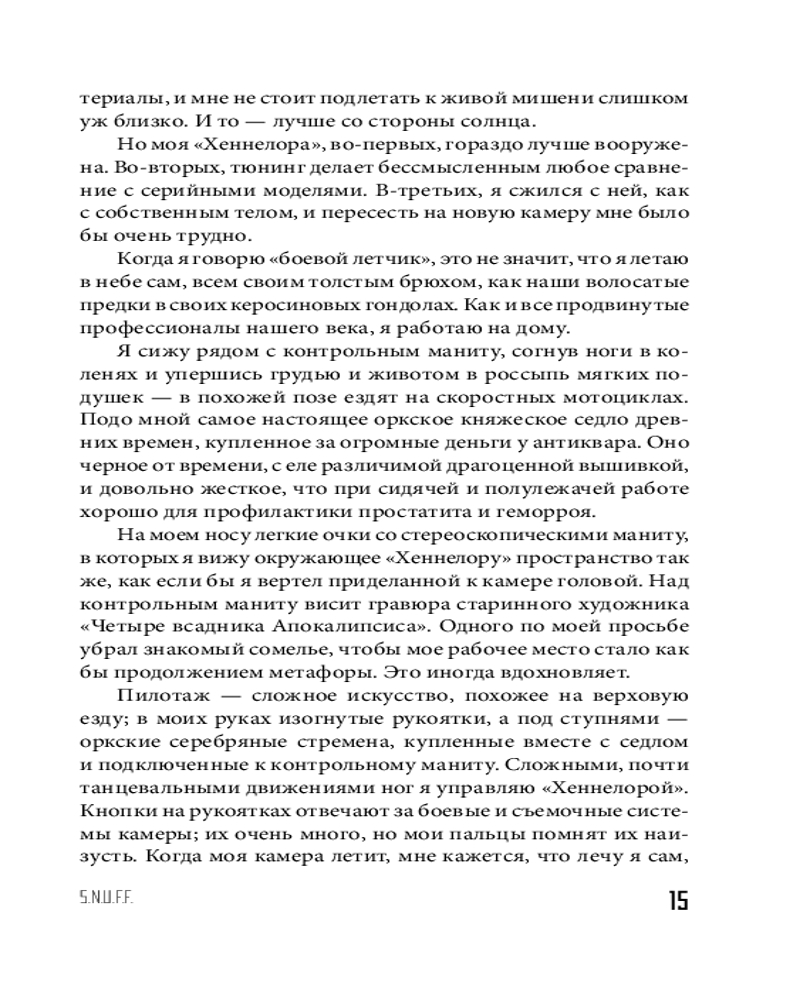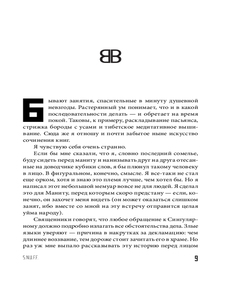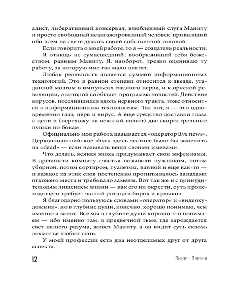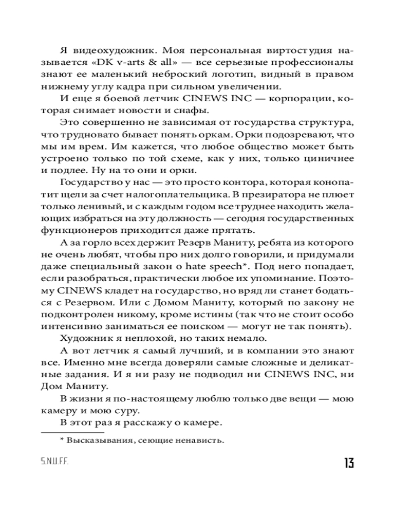 Серия: Свет горизонта. Проза Виктора Пелевина Антиутопия, научная фантастика, постмодернизм... Или ужасающий реализм? «S.N.U.F.F.» — десятый роман Виктора Пелевина, мастера удивительной прозы. Это многослойное, саркастическое и совсем недоброе повествование о том, куда и к чему движется род людской. Кажется, будто у Пелевина есть возможность время от времени заглядывать одним глазком в будущее — настолько мощен его писательский гений. |