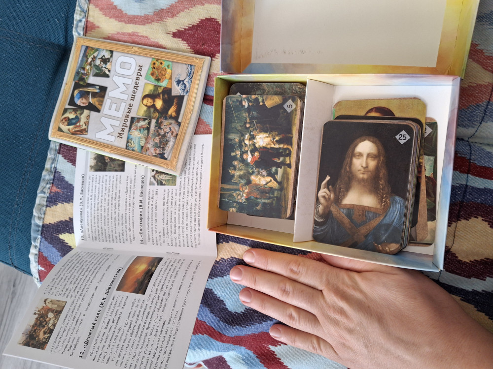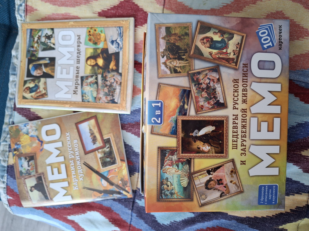 Вы и не заметите, как запомните всё, что изображено на карточках. Это игра, безусловно, расширяет кругозор, развивает внимание, тренирует память. Также в комплекте вы найдёте буклет с описанием всех мест, изображённых на карточках. Наверняка, вы узнаете много нового. А если у вас есть карта (мира, России, Санкт-Петербурга), то вы можете усложнить игру, добавив в неё задание, где ребёнку предлагается расположить карточку в соответствии с её реальным местоположением на карте. А может быть, после этого вы захотите всей семьёй увидеть воочию это место?!!! Ведь в России и мире есть столько удивительных мест, где действительно стоит побывать! Играйте в «Мемо» и путешествуйте с удовольствием!