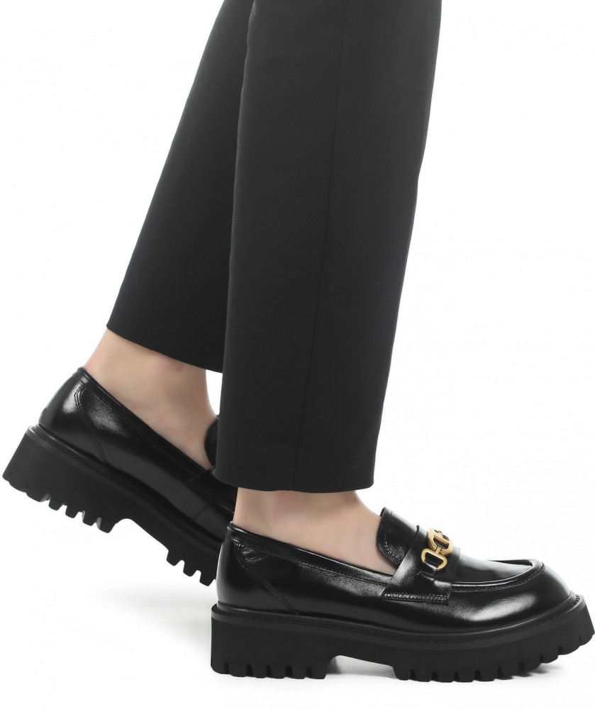 Лоферы из натуральной гладкой кожи — простые и одновременно удобные туфли в стиле Casual, BCBG. Универсальный вариант на каждый день. Подкладка из натуральной кожи. Толщина подошвы — 2,7 см. Способ соединения подошвы — клеевой. Высота обуви — 6,5 см.