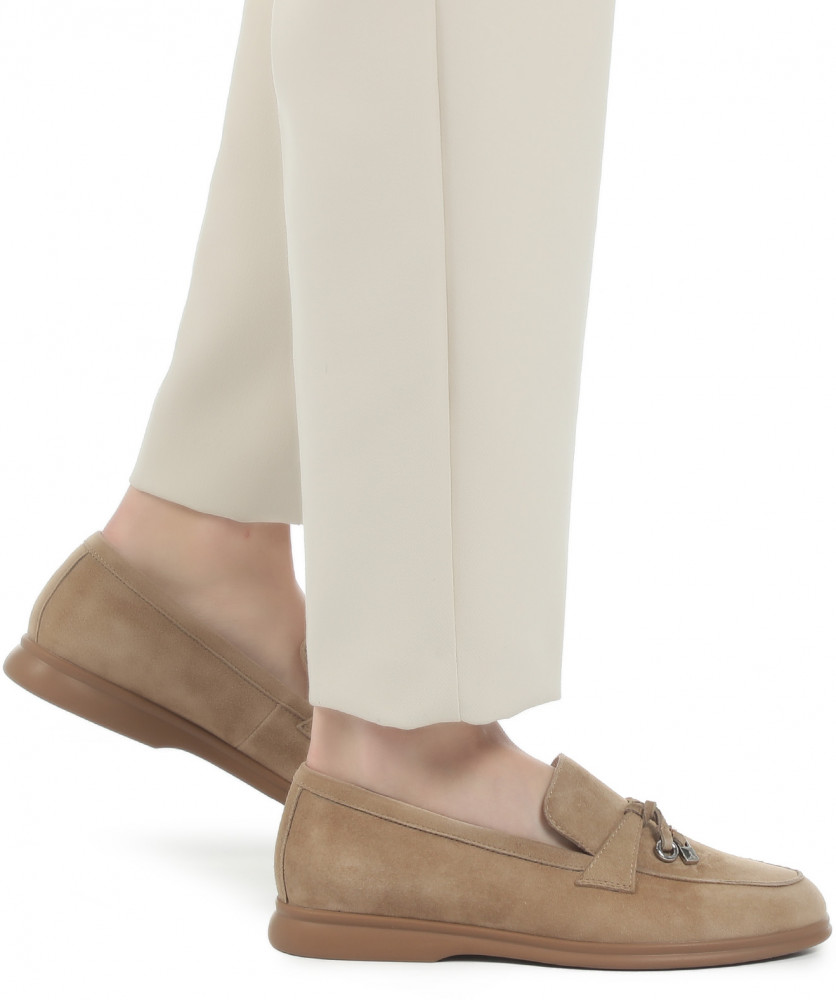 Лоферы из натуральной замши из кожи козленка — простые и одновременно удобные туфли в стиле Casual, BCBG. Универсальный вариант на каждый день. Толщина подошвы — 1,3 см. Способ соединения подошвы — клеевой. Высота обуви — 6,5 см.