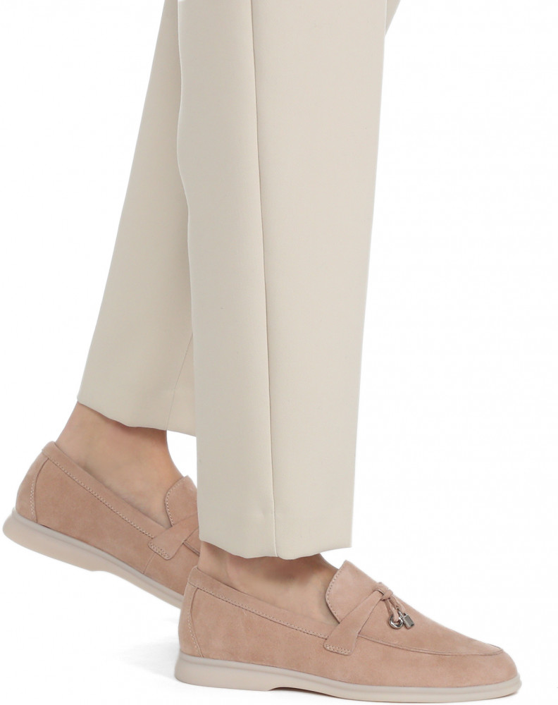 Лоферы из натуральной замши из кожи козленка — простые и одновременно удобные туфли в стиле Casual, BCBG. Универсальный вариант на каждый день. Стелька из натуральной кожи. Толщина подошвы — 1,3 см. Способ соединения подошвы — клеевой. Высота обуви — 6 см.