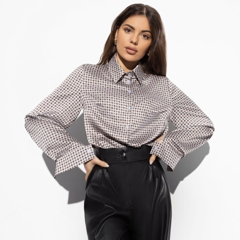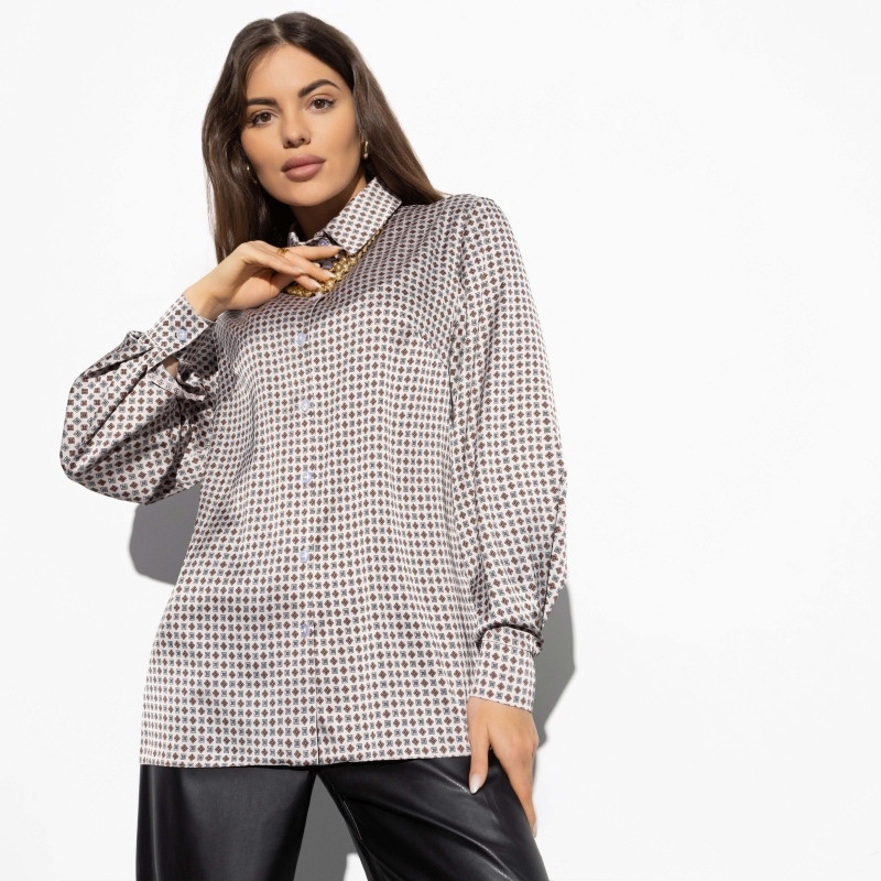 Шёлковая рубашка с принтом от компании Charutti. Модель прямого силуэта, выполнена из полотна «армани». Отложной воротник-стойка. Втачные длинные рукава на манжетах. Центральная застёжка на петли и пуговицы. Идеальный выбор для Вашего стильного гардероба.