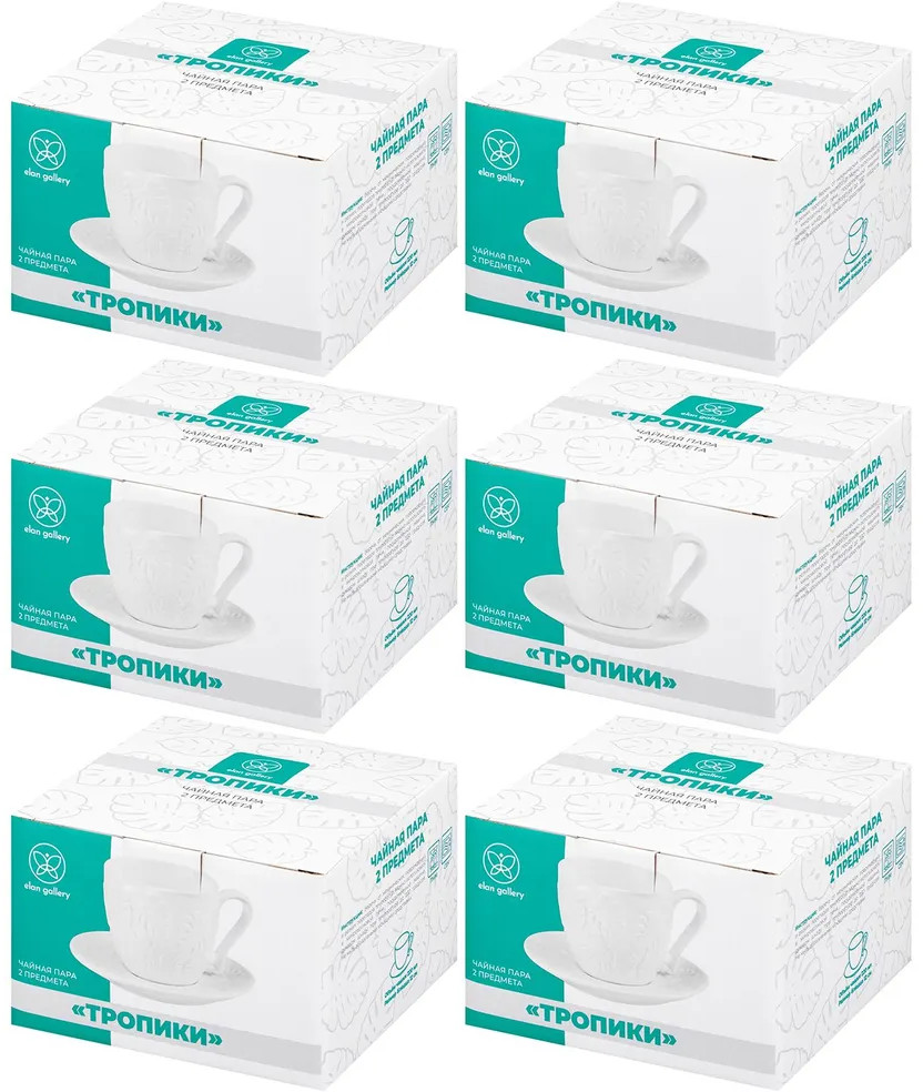 Elan Gallery Набор чайных пар «Тропики»В данный момент этот товар отсутствует в продаже. Возможно, у нас найдется аналогичный или похожий товар здесь. Серия: Тропики Набор из шести чайных пар Elan Gallery «Тропики» состоит из двенадцати предметов: шесть чашек объёмом 220 мл и шесть блюдец. Используйте комплект как чайный или кофейный. Набор на шесть персон поможет провести множество вкусных завтраков с капучино или латте или уютных вечеров с любимым горячим напитком. Комплект выполнен из высококачественного белого фарфора и украшен декоративными рельефными узорами. Фарфоровая посуда отличается от керамики повышенной плотностью. Фарфор не впитывает цвет кофе или чая и не деформируется от влаги, чему может быть подвержена керамическая посуда. Кружки и тарелки можно использовать в микроволновой печи и посудомоечной машине. Поставляются в стильной картонной упаковке. Набор из серии посуды «Тропики» станет настоящим украшением вашей кухни или приятным подарком для родных и близких! |