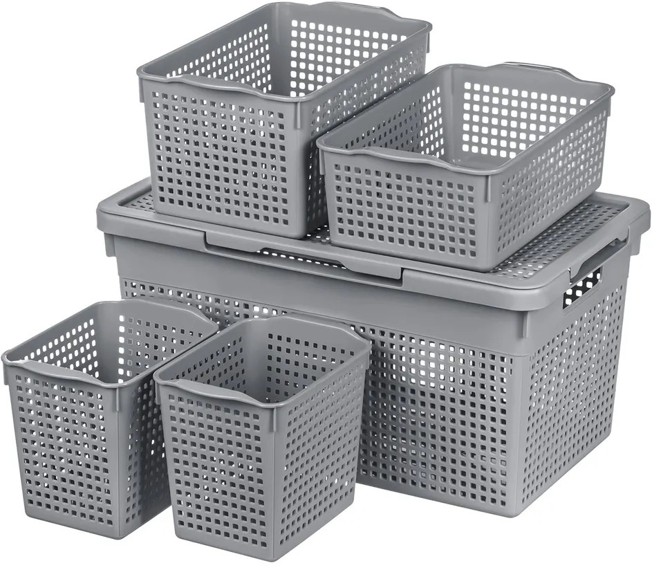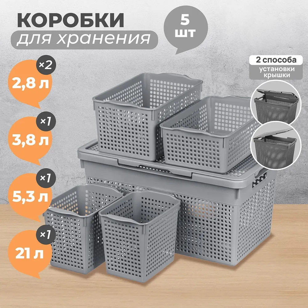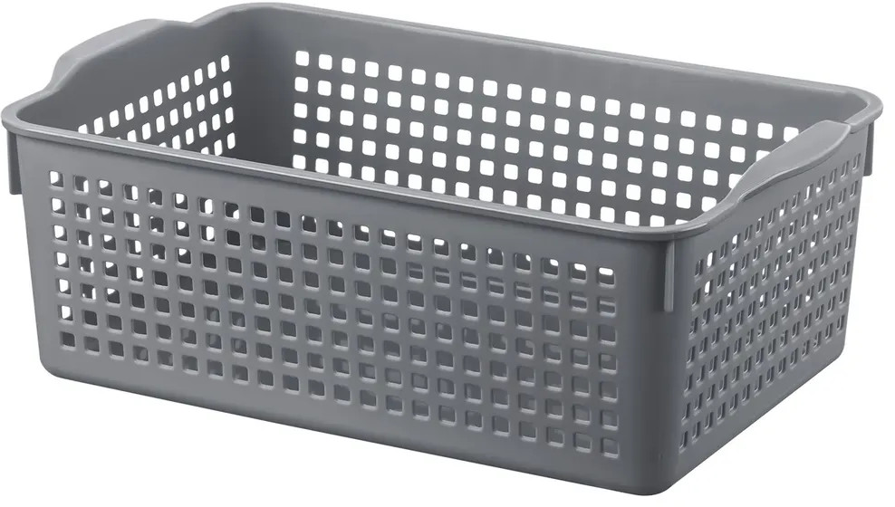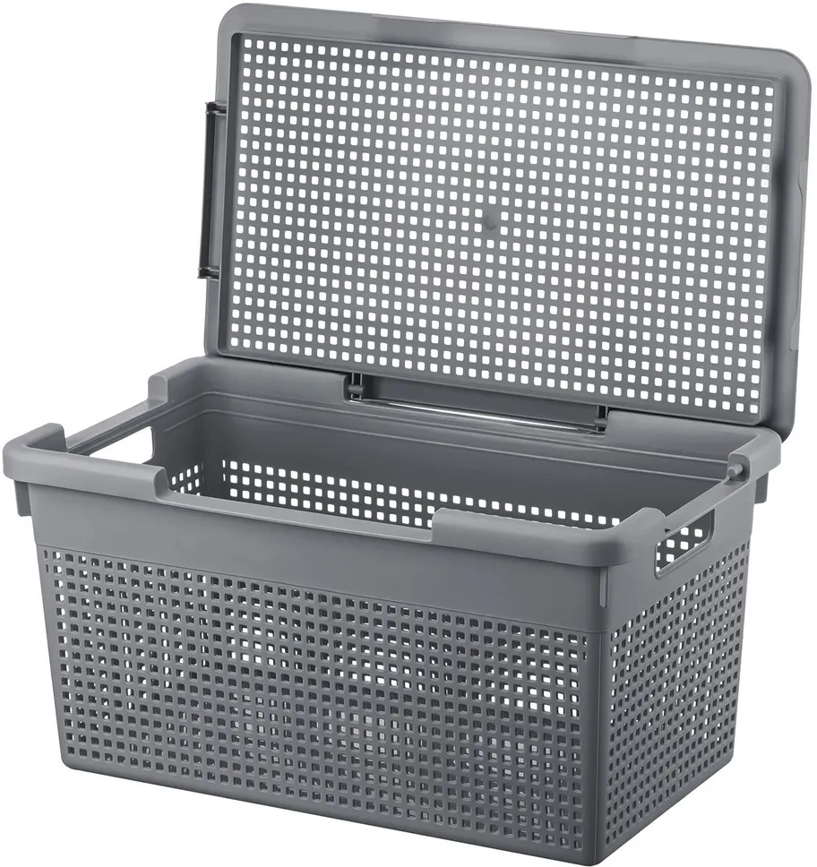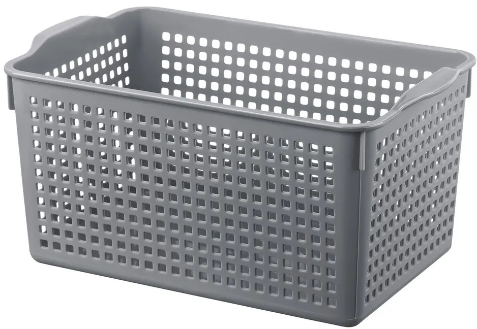 Органайзеры выполнены из полипропилена. Преимущество данного материала над обычным пластиком в том, что он легкий по весу и наиболее безопасный для здоровья. В универсальном контейнере серого цвета можно хранить как овощи и фрукты, так и кухонные и хозяйственные принадлежности. Используйте емкость для косметики, бытовой химии, моющих средств. Специальное плетение с дырочками позволяет воздуху проникать внутрь и не дает продуктам испортиться от недостатка кислорода. Корзина может быть использована для белья, полотенец и хранения различных мелочей. Такую подставку можно поставить под раковину в ванной, возле стиральной машины или на полку. Ящички можно хранить компактно — один в другом. Используйте в детской комнате как стеллаж или ящик для игрушек. Товары представлены разных объемов, форм и расцветок, что позволит собрать уникальный набор, подходящий под ваши потребности.