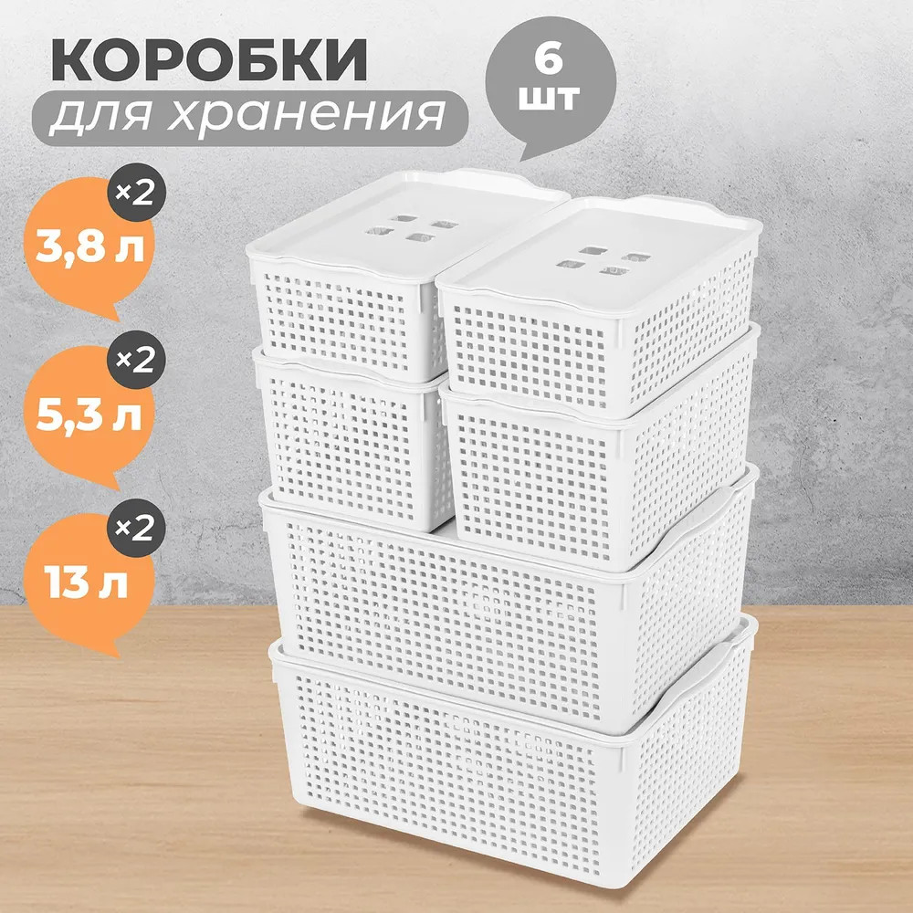 Органайзеры выполнены из полипропилена. Преимущество данного материала над обычным пластиком в том, что он легкий по весу и наиболее безопасный для здоровья. В универсальном контейнере белого цвета можно хранить как овощи и фрукты, так и кухонные и хозяйственные принадлежности. Используйте емкость для косметики, бытовой химии, моющих средств. Специальное плетение с дырочками позволяет воздуху проникать внутрь и не дает продуктам испортиться от недостатка кислорода. Корзина может быть использована для белья, полотенец и хранения различных мелочей. Такую подставку можно поставить под раковину в ванной, возле стиральной машины или на полку. Ящички можно хранить компактно — один в другом. Используйте в детской комнате как стеллаж или ящик для игрушек. Товары представлены разных объемов, форм и расцветок, что позволит собрать уникальный набор, подходящий под ваши потребности.