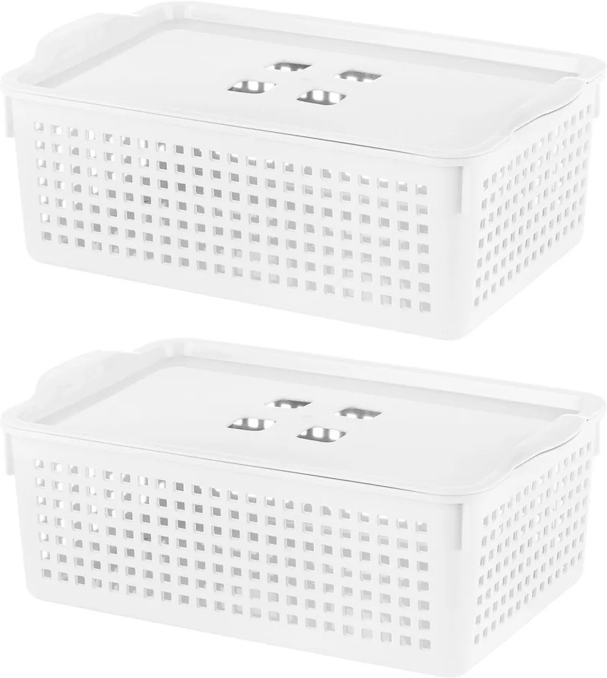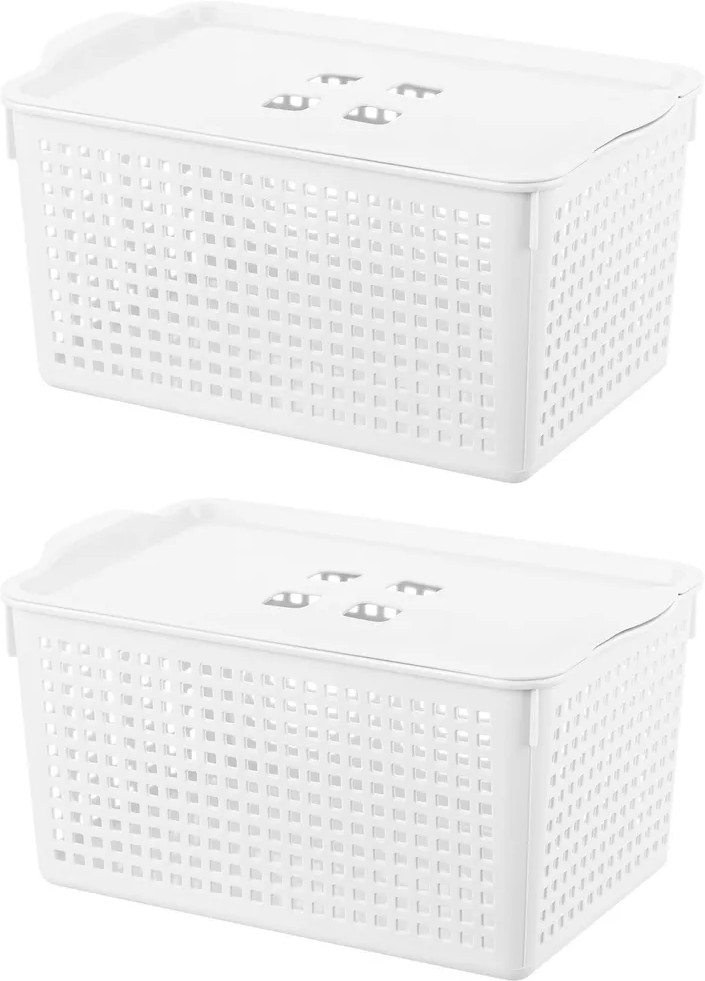 • корзина с крышкой объемом 3,8 литра (размер 29,5 × 18,5 × 10,5 см, дно 25 × 16 см) — 2 шт;