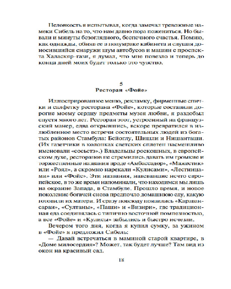 Серия: The Big Book (мягкая обложка) Орхан Памук — известный турецкий писатель, обладатель многочисленных национальных и международных премий, в числе которых Нобелевская премия по литературе за «поиск души своего меланхолического города». В основу его романа «Музей Невинности» положена история любви между отпрыском состоятельной семьи, стоящим на пороге выгодной помолвки, и неожиданно встреченной им подругой детства; история, бережно хранимая в особом музее, созданном «не для того, чтобы ходить по нему и смотреть на вещи, а для того, чтобы чувствовать и жить». |