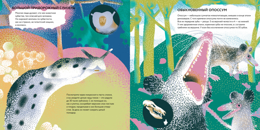 В этой книге нам предстоит заглянуть в самые разные пасти — динозавров, улиток, китов! Мы узнаем множество невероятных фактов о зубах плотоядных и травоядных животных — и уже вымерших, и ныне живущих. Что общего у зубов акулы и человека? У кого зубы растут всю жизнь? Кто способен пробурить зубами бетон, кто мерить зубом температуру воды, а кто и вовсе притворяться беззубым?