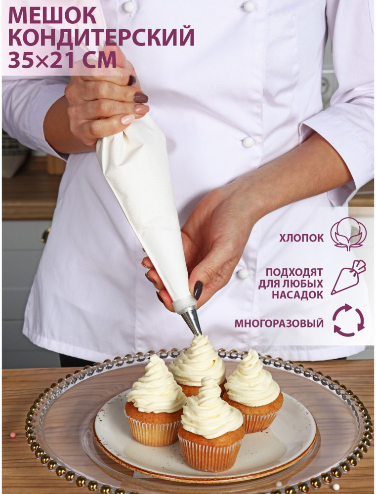 Мешок кондитерский — необходимый помощник на кухне. Если вы хотите побаловать близких тортами и различными десертами с кремом, то вам он просто необходим. Кондитерский мешок поможет украсить кремом торты и пирожные, наполнить начинкой пончики и эклеры, а также приготовить фигурные печенья. Мешок можно подрезать по диаметру насадки. |