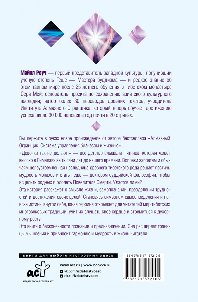 Серия: Система Алмазный Огранщик Вы держите в руках новое произведение от автора бестселлера «Алмазный Огранщик. Система управления бизнесом и жизнью». «Девочки так не делают!» — все детство слышала Пятница, которая живет высоко в Гималаях за тысячи лет до нашего времени. Вопреки запретам и обычаям целеустремленная наследница древнего тибетского рода решает постичь мудрость монахов и стать Геше — доктором буддийской философии, чтобы исцелить родных и одолеть Повелителя Смерти. Удастся ли ей? |