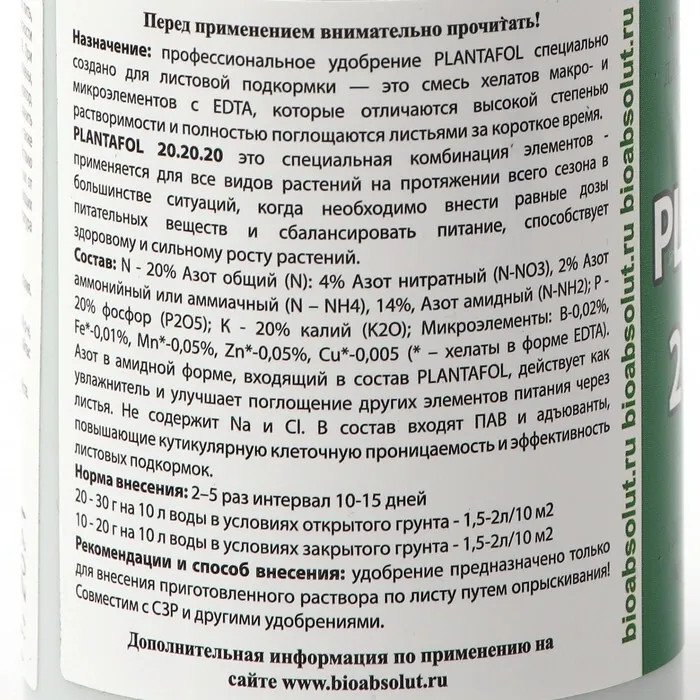 ТероПром Удобрение «Plantafol NPK 20-20-20»+98