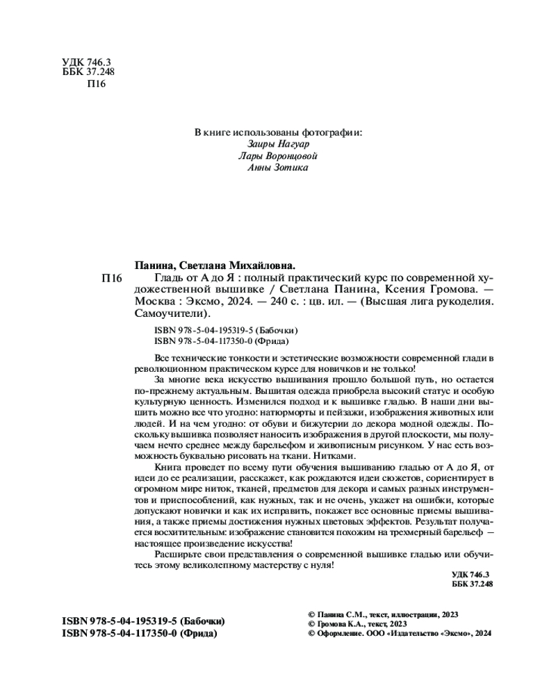 В данный момент этот товар отсутствует в продаже. Возможно, у нас найдется аналогичный или похожий товар здесь. Серия: Высшая лига рукоделия. Самоучители «Вышивка превращает предметы в объекты искусства. Мы можем преображать любую вещь, составляя собственные культурные высказывания. В первую очередь те, что актуальны в моде». — Светлана Панина, Ксения Громова.