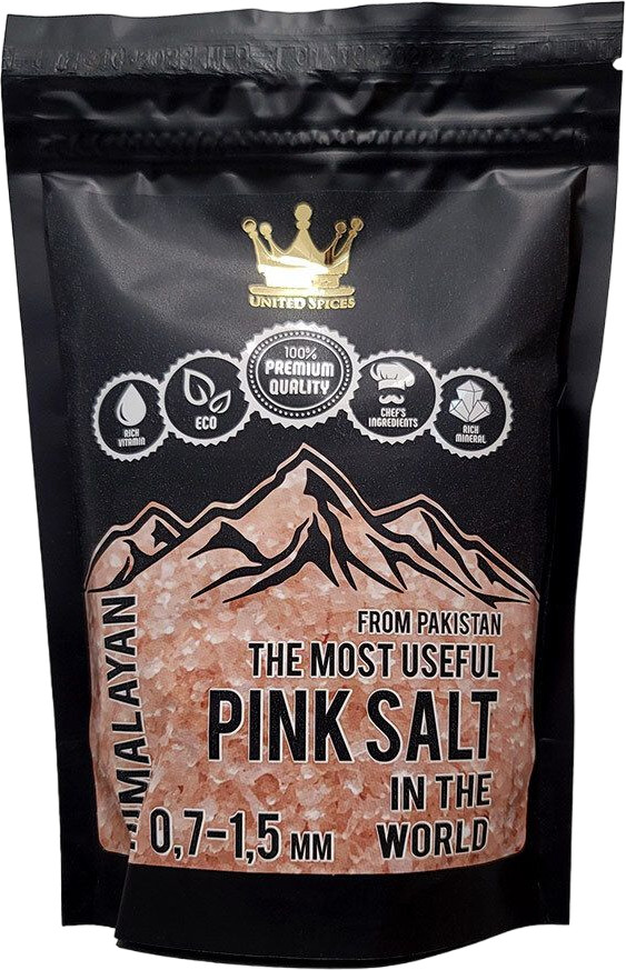 United Spices Соль гималайская розоваяприятный вкус богата минералами хорошее качество мелкий помол несоответствие упаковки