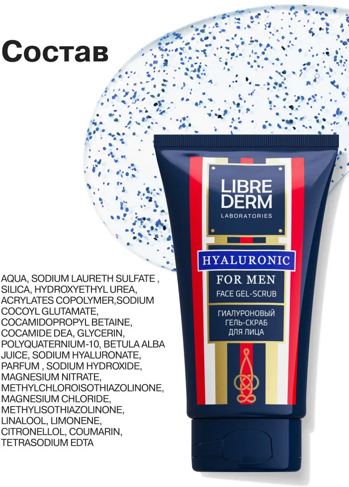 Librederm Гель-скраб для лица гиалуроновый мужской