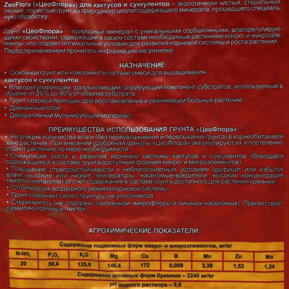 Zeoflora Субстрат минеральный для кактусов и суккулентов-40% +102 мелкая фракция целая упаковка алоказиям понравился