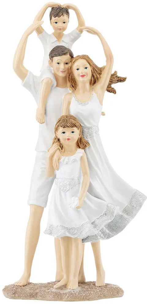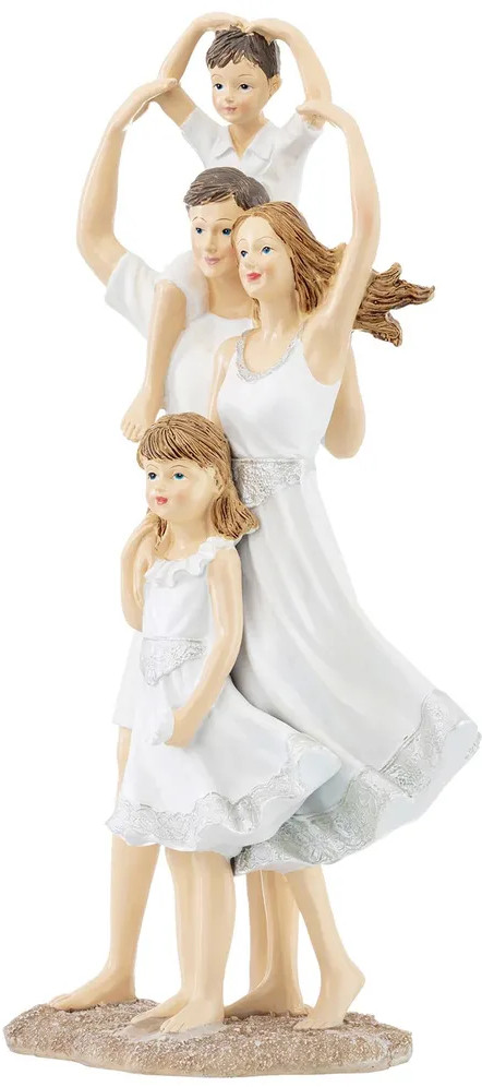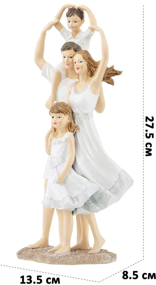 Фигурка изображает счастливую семью: папу, маму и их детей в белой одежде. Этот интересный элемент декора принесёт в дом красоту и уют. Фигурка послужит украшением гостиной или спальни и добавит в ваш интерьер нотки индивидуальности и стиля. Превратите вашу кухню или дачу в уютное место с особой атмосферой благодаря этому сувениру! Вы можете разместить статуэтку на полке, столе или создать декоративную композицию вместе с другими украшениями. Фигурка станет чудесным подарком для ваших родных и близких на любой праздник. Пусть она будет символом домашнего уюта и создаст хорошее настроение взрослым и детям!