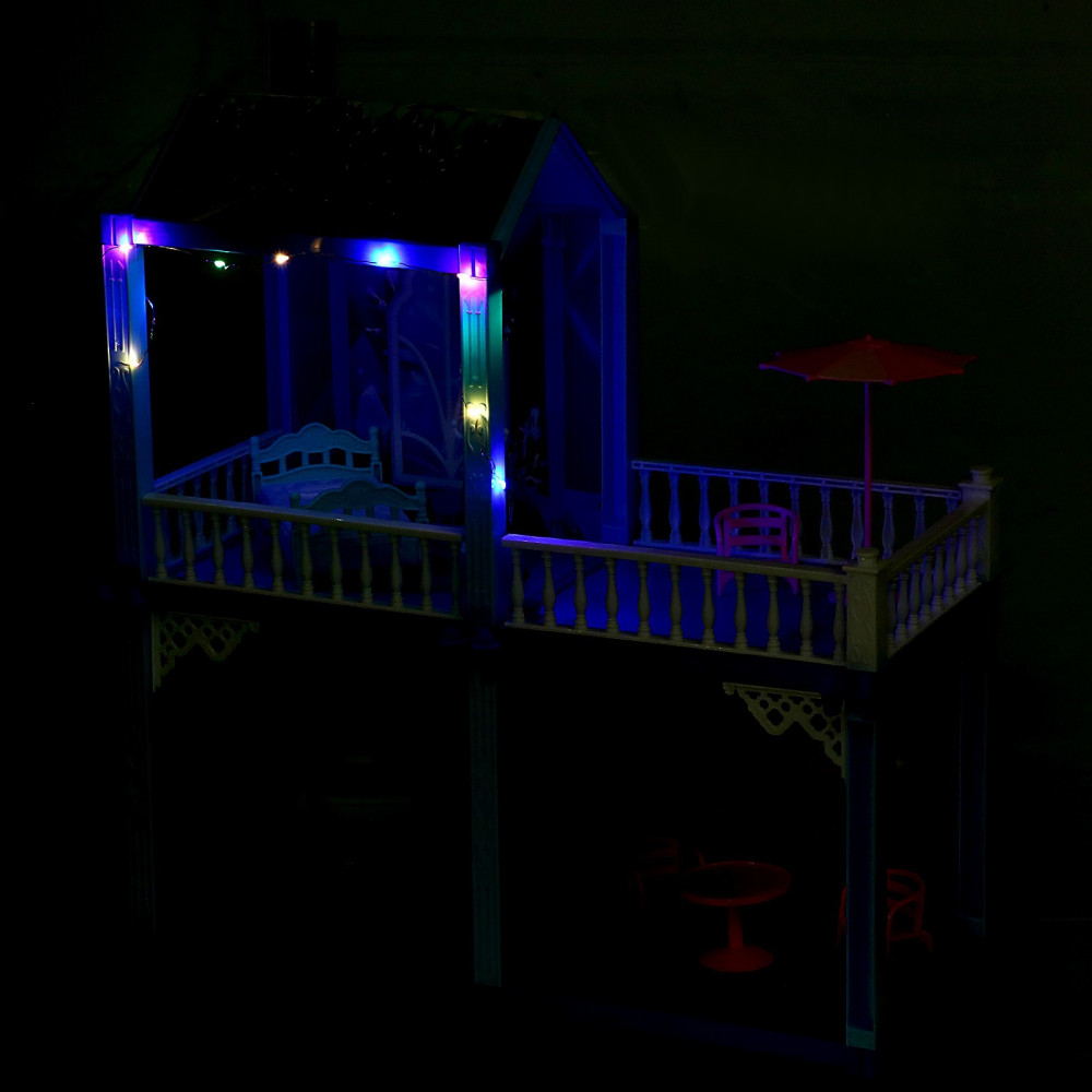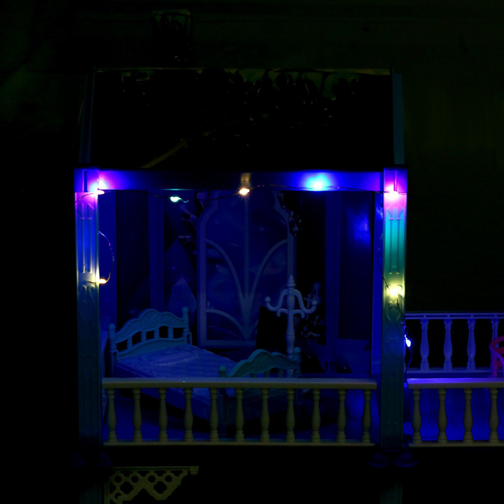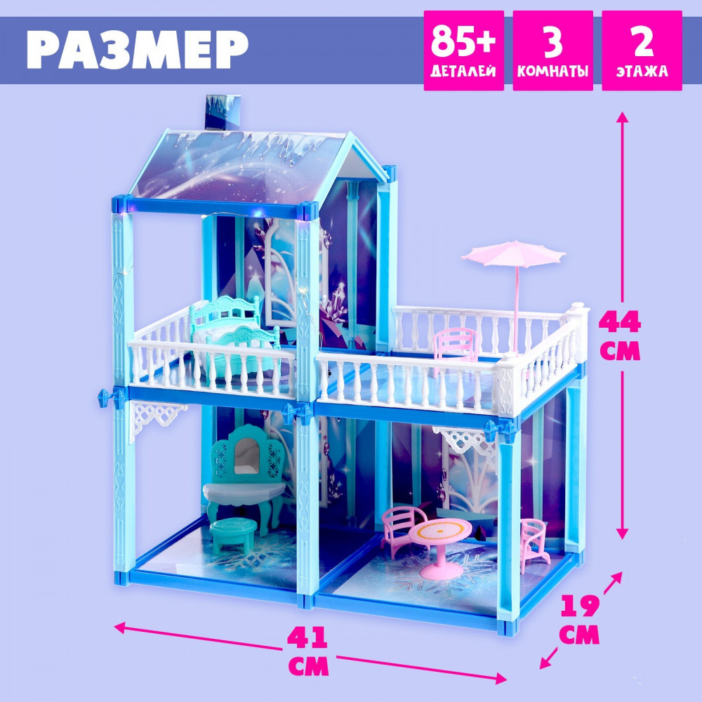 Набор подходит для кукол высотой до 15 см. В комплект входят аксессуары: мебель и предметы интерьера. Они сделают игру увлекательнее и реалистичнее. В комплекте есть гирлянда длиной 48 см. Ей малышка дополнит интерьер кукольного домика или своей комнаты. Также в комплекте набор красочных наклеек. Ими девочка сможет декорировать любимые предметы. Размер домика в собранном виде — 41 × 19 × 44 см . Высота этажа — 17,5 см. Высота перекладины между этажами — 1,2 см
