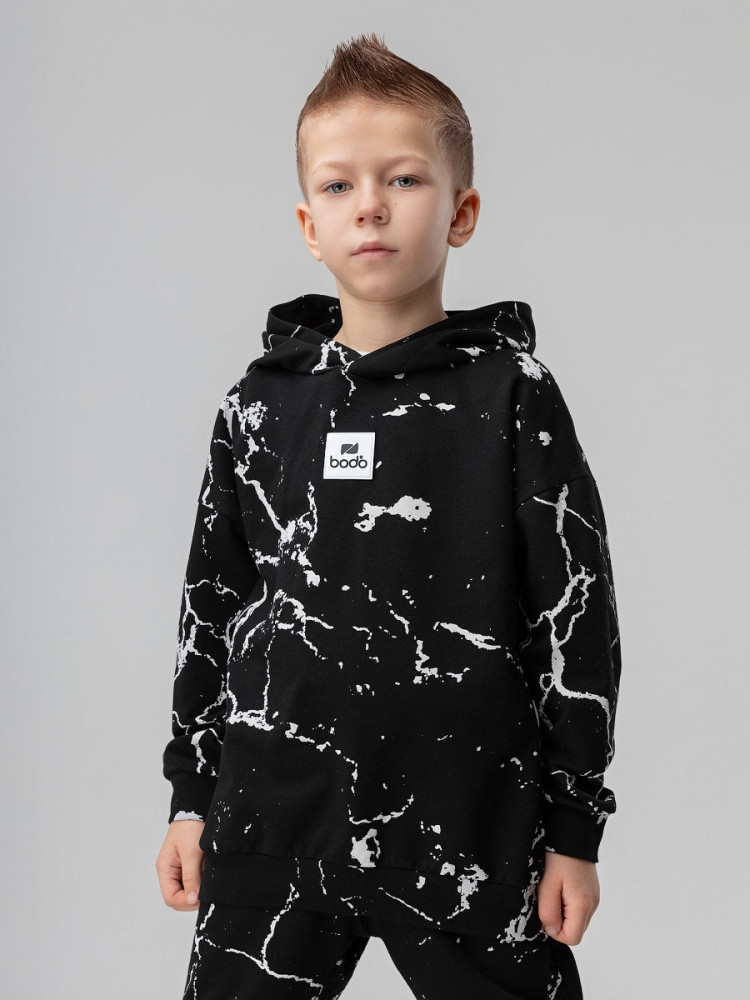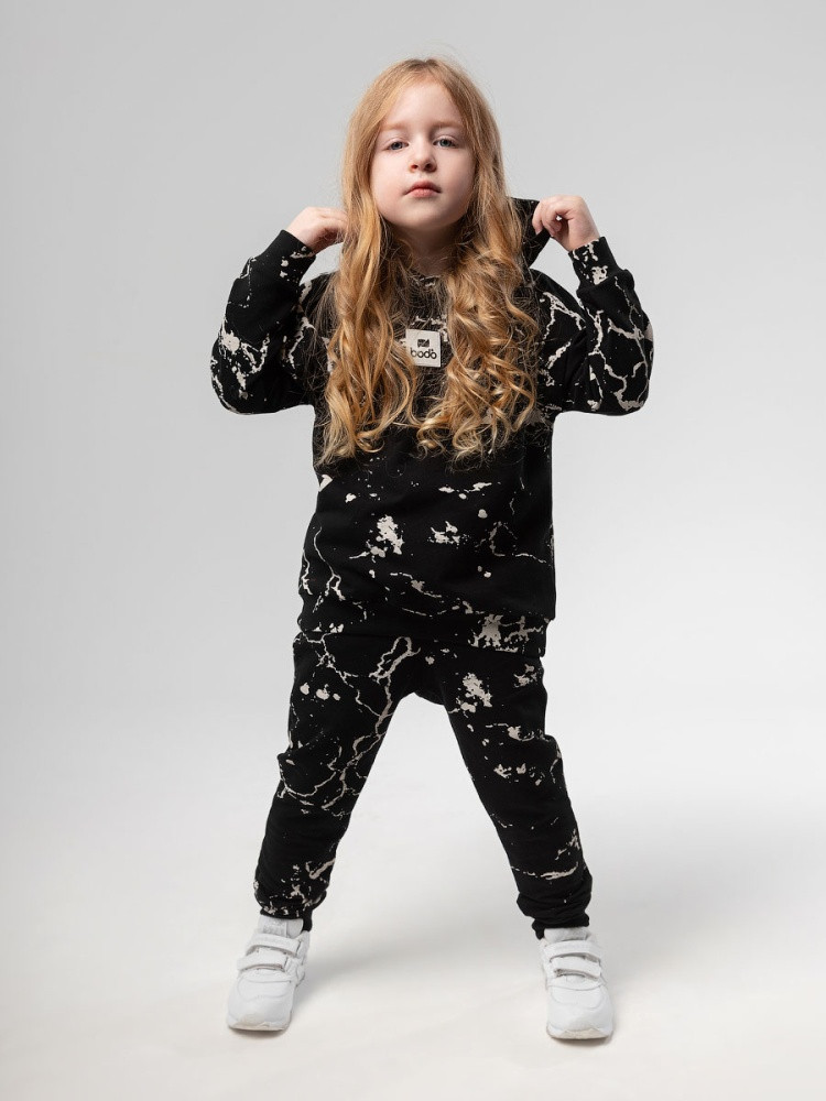 Костюм детский. Толстовка полуприлегающий покрой, несъемный капюшон, рукава на манжетах. Брюки- джоггеры, детали: пояс — эластичная резинка, низ изделия- манжеты.