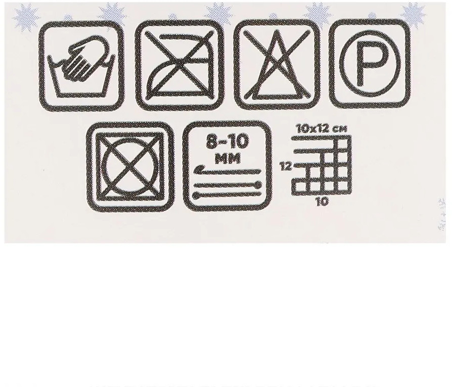 Рекомендации по уходу: ручная стирка без отбеливателя; допускается профессиональная чистка; не отжимать в стиральной машине; гладить запрещено.