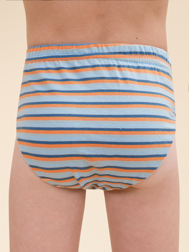 Выбирая бельё для ребёнка, в первую очередь заботятся о его качестве и о том, чтобы ребёнку было удобно. Комплект трусиков из трех штук полностью соответствует этим запросам. В составе ткани 100% хлопка — слипы приятны на ощупь, великолепно пропускают воздух, давая коже ребёнка дышать. Качественный натуральный материал и анатомически правильный крой гарантируют идеальную посадку на теле — ребёнку комфортно на протяжении всего дня. Мягкая широкая резинка в поясе исключает трение и дискомфорт. Трусы-слипы для мальчика превосходно сочетаются с любой одеждой. Трусы представлены в трёх вариантах расцветки: в оранжево-голубую полоску, однотонные синие с декоративной нашивкой на поясе (на нашивке забавный баскетбольный мяч, надпись переводится: «окей, вперёд») и синие с небольшим принтом в виде скейтборда и надписей «почувствуй классный вайб» и «лёгкий на подъём» по переду. Принт мягкий и устойчивый, отлично переносит частые стирки.