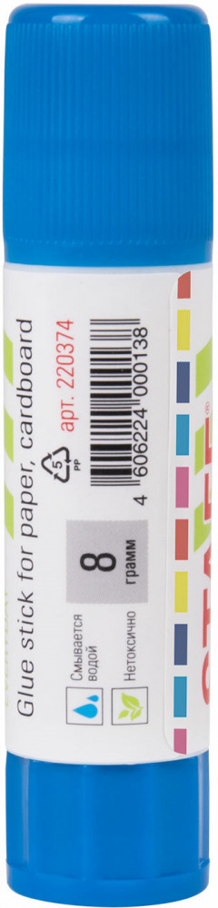 Staff Клей-карандашВ данный момент этот товар отсутствует в продаже. Возможно, у нас найдется аналогичный или похожий товар здесь. Клей-карандаш «EVERYDAY» предназначен для склеивания бумаги, картона, фотографий и фотобумаги. Прекрасный выбор для офиса, дома и школы.  |