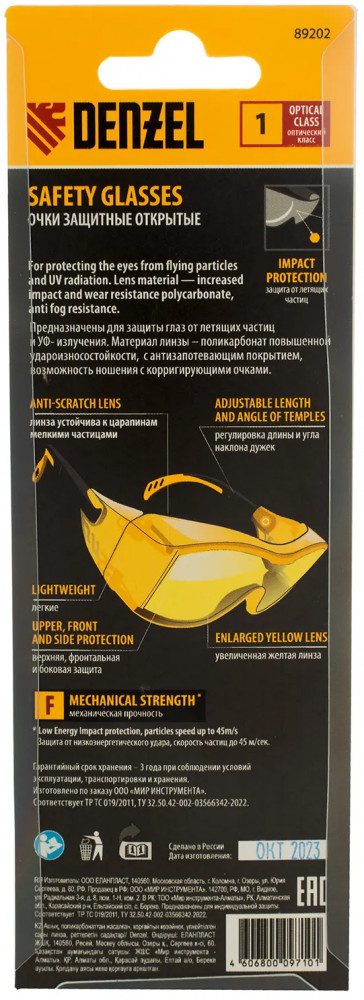 💳 Оплатить за товар можно при получении 🇰🇿 Есть бесплатная доставка по Казахстану 🎁 Копите бонусы с каждой покупки Очки защитные открытые Denzel с увеличенными поликарбонатными желтыми линзами предназначены для защиты глаз от механических повреждений и УФ-излучения. Очкам присвоен класс механической прочности F, они обеспечивают защиту от высокоскоростных частиц с низкоэнергетическим ударом (скорость частиц до 45 м/с). Легкие универсальные очки используются во время работы с электро- и бензоинструментом, на производстве и в быту. |