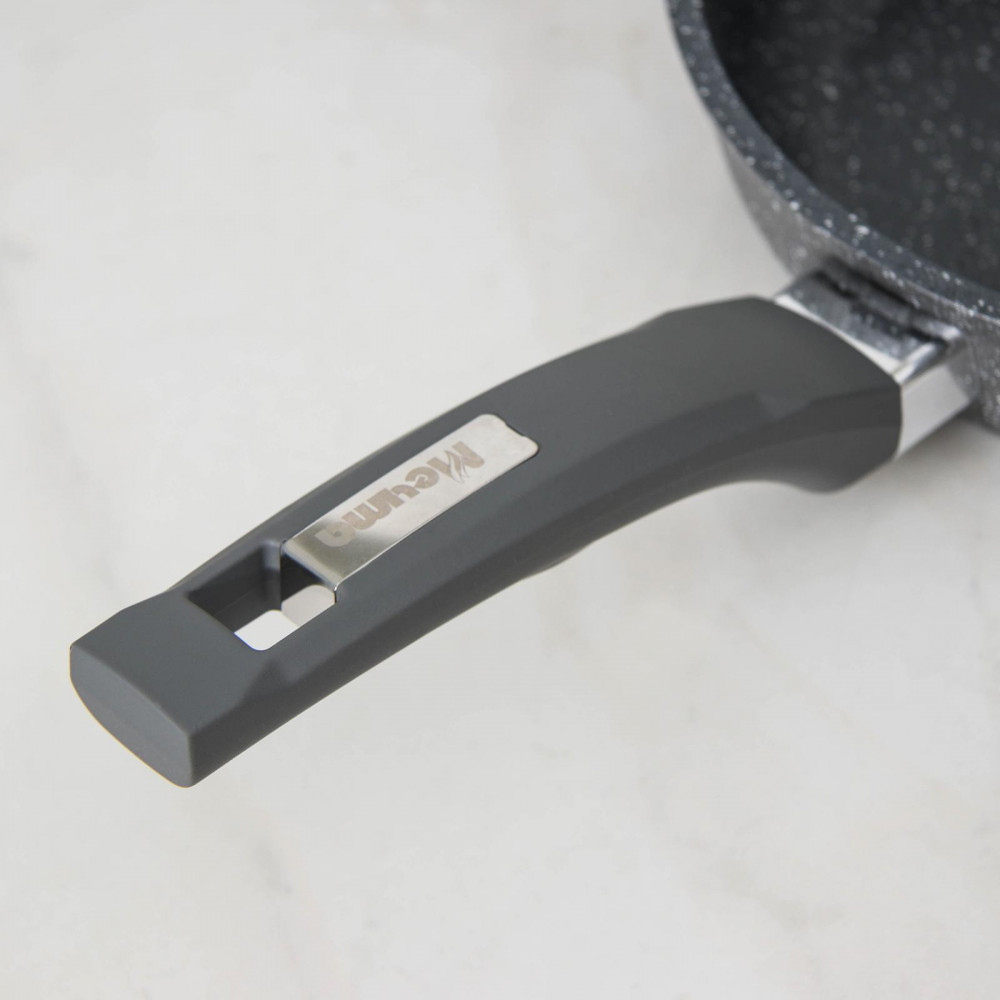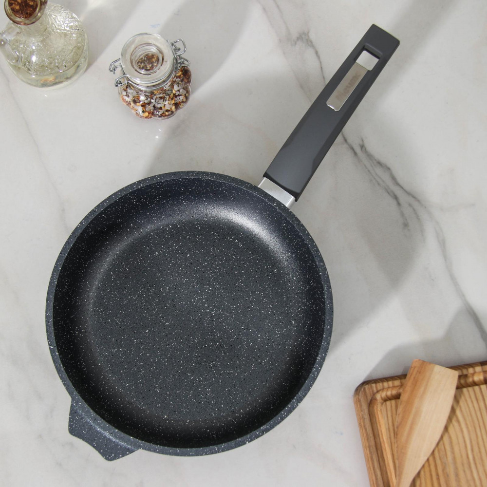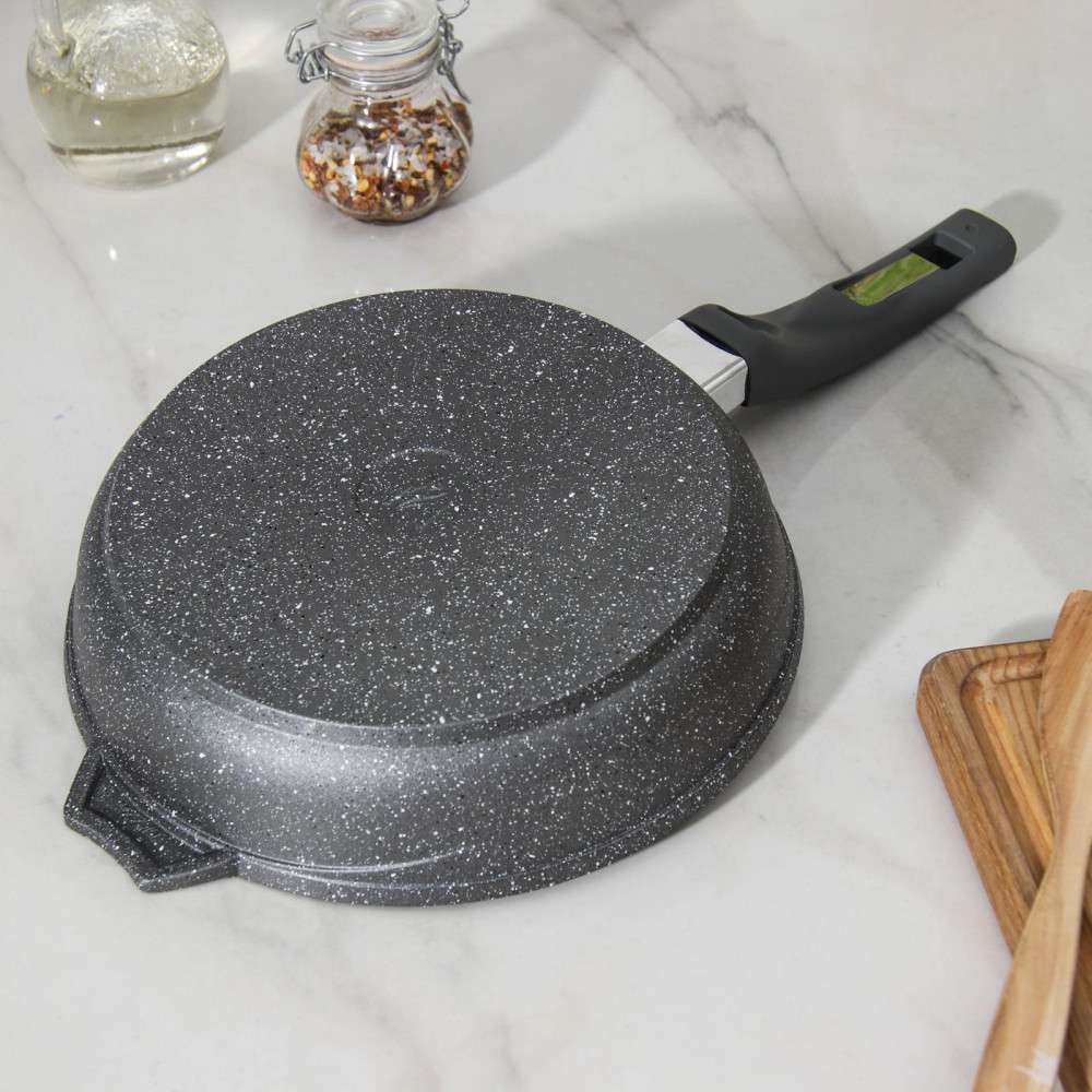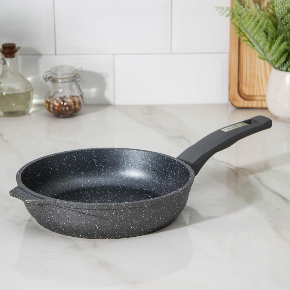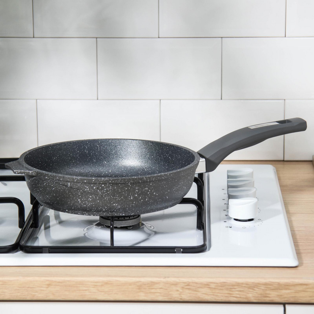 Сковорода линии Гранит с антипригарным покрытием, которое является полностью безвредным для вашего здоровья при готовке ваших любимых блюд. Сковорода подходит для всех видов плит, кроме индукционных. Сковорода ТМ Мечта прослужит вам долго. Сковорода изготовлена из прочного и легкого сплава пищевого алюминия. Это один из самых высококачественных и экологических материалов для производства посуды, обладает высокой тепловой проводимостью и обеспечивает равномерный нагрев.