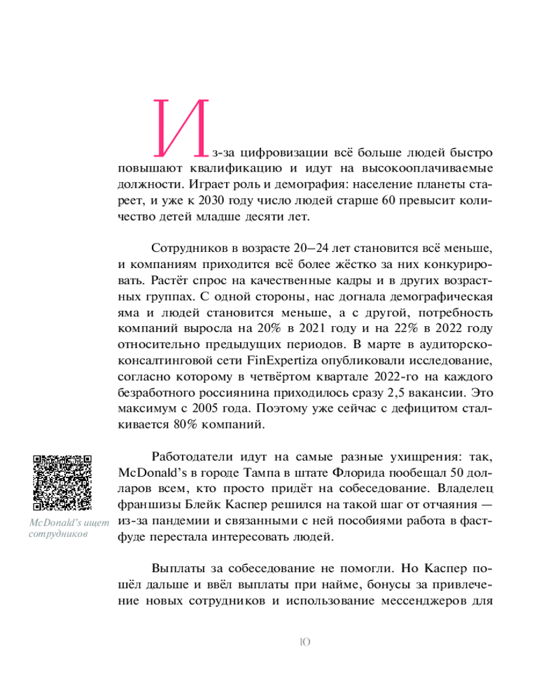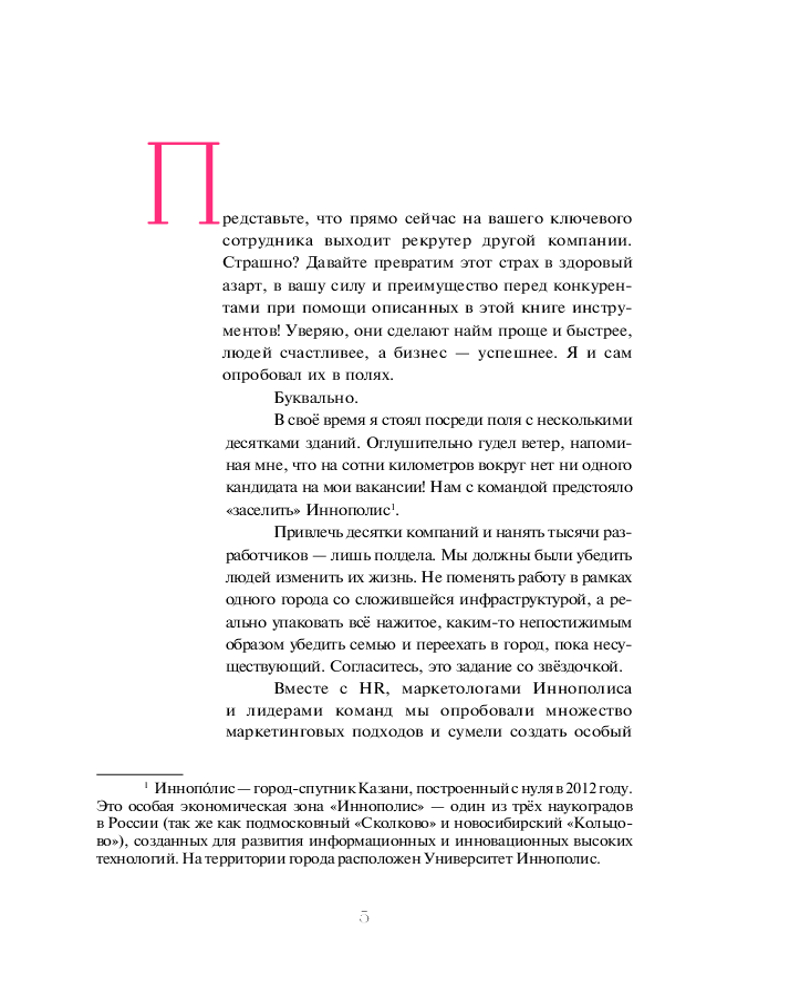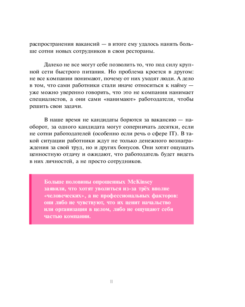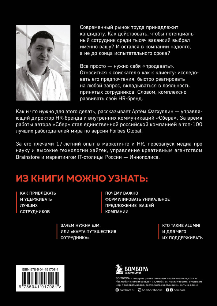 Серия: HRесурс: рекрутинг, обучение и оценка персонала Современный рынок труда принадлежит кандидату. Как действовать, чтобы потенциальный сотрудник среди тысяч вакансий выбрал именно вашу? И остался в компании надолго, а не до конца испытательного срока? Все просто — нужно себя «продавать». Относиться к соискателю как к клиенту: исследовать его предпочтения, быстро реагировать на любой запрос, вкладываться в лояльность принятых сотрудников. Словом, комплексно развивать свой HR-бренд. |