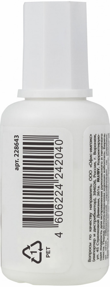 Корректирующая жидкость на водной основе идеально исправляет как печатный, так и рукописный текст. Корректирующая жидкость на водной основе является морозоустойчивой и быстро высыхает на бумаге. Флакона объемом 20 мл хватит на продолжительное время. Кисточка позволяет легко наносить жидкость.