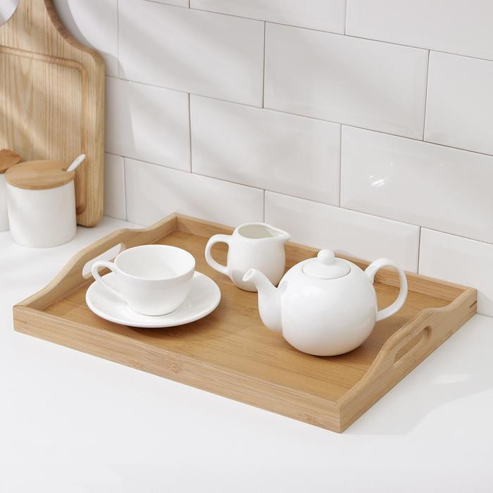 Поднос выполнен из натурального бамбука и поможет устроить завтрак в постель или чаепитие на веранде. Поднос подойдет для организации хранения или создания декоративных композиций. По краям имеются две ручки. На таком подносе удобно переносить посуду и другие вещи. Изделия из бамбука не влияют на изменение вкусовых качеств пищи, не поглощают запахи и влагу, поэтому на них не скапливаются и не размножаются бактерии.