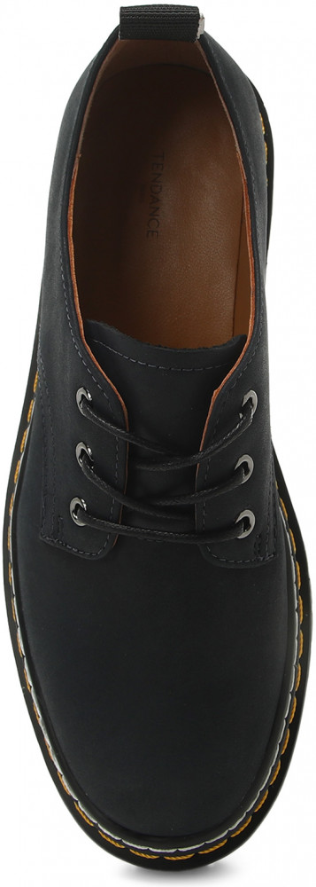 Женские полуботинки французского бренда «Tendance» — верх модели сделан из натуральной кожи, прочного и эластичного материала, он пропускает воздух при этом хорошо защищает ноги от ветра и холода. В них будет комфортно как в помещении, так и на улице в прохладную погоду. Плотность посадки регулируется шнуровкой. Подкладка из кожи, стелька — из натуральной кожи, мягкие и тонкие, приятные на ощупь. Толщина подошвы — 2,3 см. Способ соединения подошвы — клеевой. Высота обуви — 6,5 см.