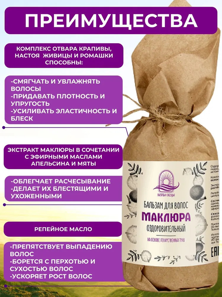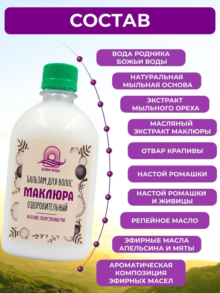 Божьи Воды Бальзам для волос на основе лекарственных трав «Маклюра»