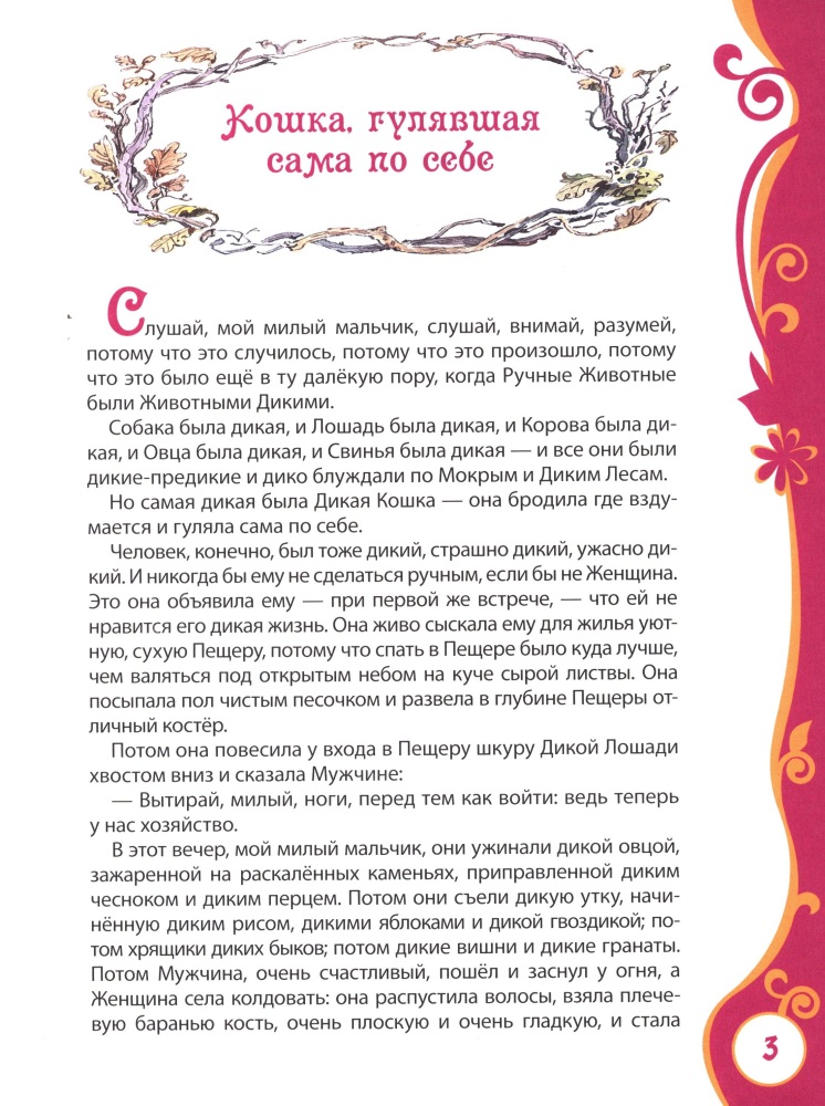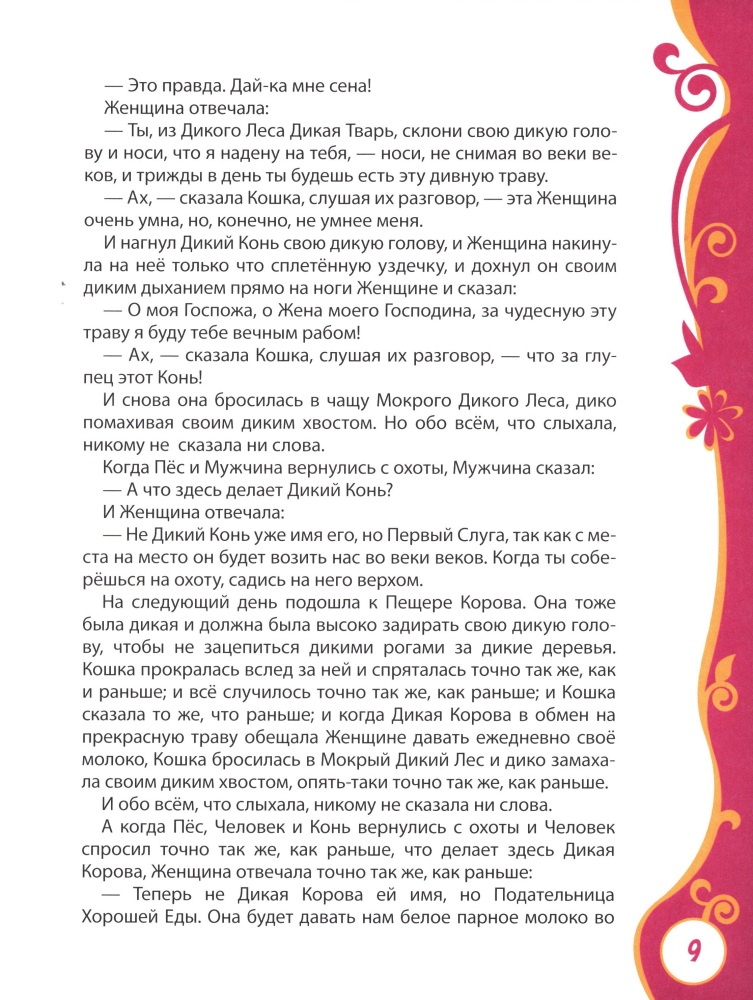Кошка, гулявшая сама по себе, Рикки-Тикки-Тави, Откуда у Кита такая глотка, Отчего у Верблюда горб, Слонёнок, Откуда взялись Броненосцы, Как было написано первое письмо, Откуда у Носорога шкура, Как Краб играл с морем, Как Леопард получил свои пятна, Как была выдумана азбука.