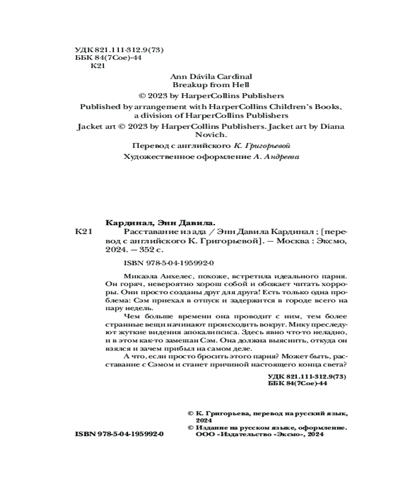 Серия: Young Adult. Спеши любить Микаэла Анхелес, похоже, встретила идеального парня. Он горяч, невероятно хорош собой и обожает читать хорроры. Они просто созданы друг для друга! Есть только одна проблема: Сэм приехал в отпуск и задержится в городе всего на пару недель. Чем больше времени она проводит с ним, тем более странные вещи начинают происходить вокруг. Мику преследуют жуткие видения апокалипсиса. Здесь явно что-то неладно, и в этом как-то замешан Сэм. Она должна выяснить откуда он взялся и зачем прибыл на самом деле. А что, если просто бросить этого парня? Может быть, расставание с Сэмом и станет причиной настоящего конца света?  |