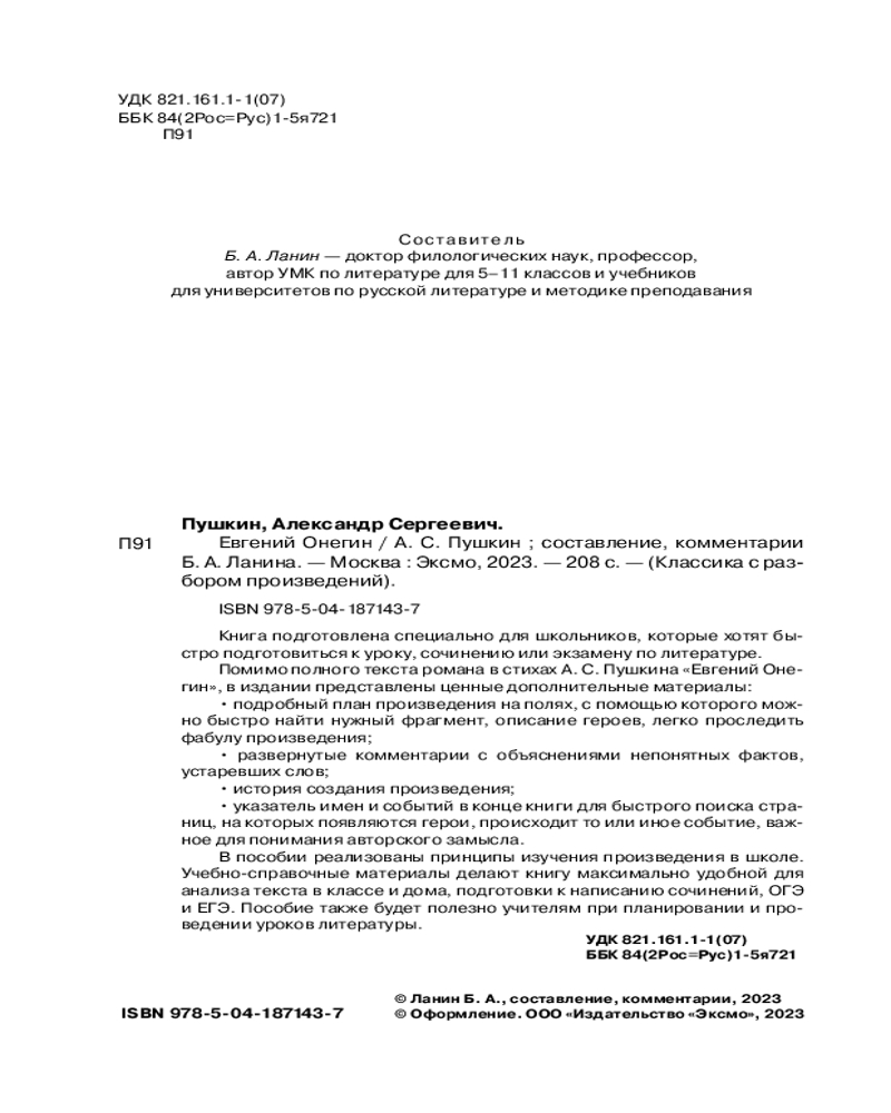Серия: Классика с разбором произведений «Евгений Онегин» — бессмертное произведение прославленного русского поэта и прозаика А. С. Пушкина, написанное в начале XIX века. Этот уникальный роман в стихах, в котором поэт с великолепной точностью использовал все богатство и многообразие русского языка, до сих пор пользуется большой популярностью как среди школьников, так и среди старших поколений.