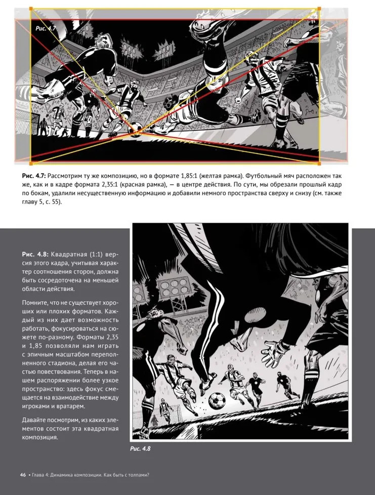 Долгожданная вторая часть «Framed Ink» посвящена важнейшему аспекту визуального сторителлинга — энергии кадра, которая позволяет эмоционально воздействовать на зрителя. Маркос Матеу-Местре рассказывает, как грамотно выстраивать кадры любого формата — пейзажного, вертикального или квадратного — и работать с такими композиционными средствами, как действие и реакция, области напряжения и расслабления, общая динамика, ритм и поворотные точки кадра. В книге на множестве наглядных примеров показано, как использовать сильные стороны разных форматов и с помощью грамотной композиции усиливать впечатление от повествования. Для художников-аниматоров, комиксистов, раскадровщиков и иллюстраторов. |