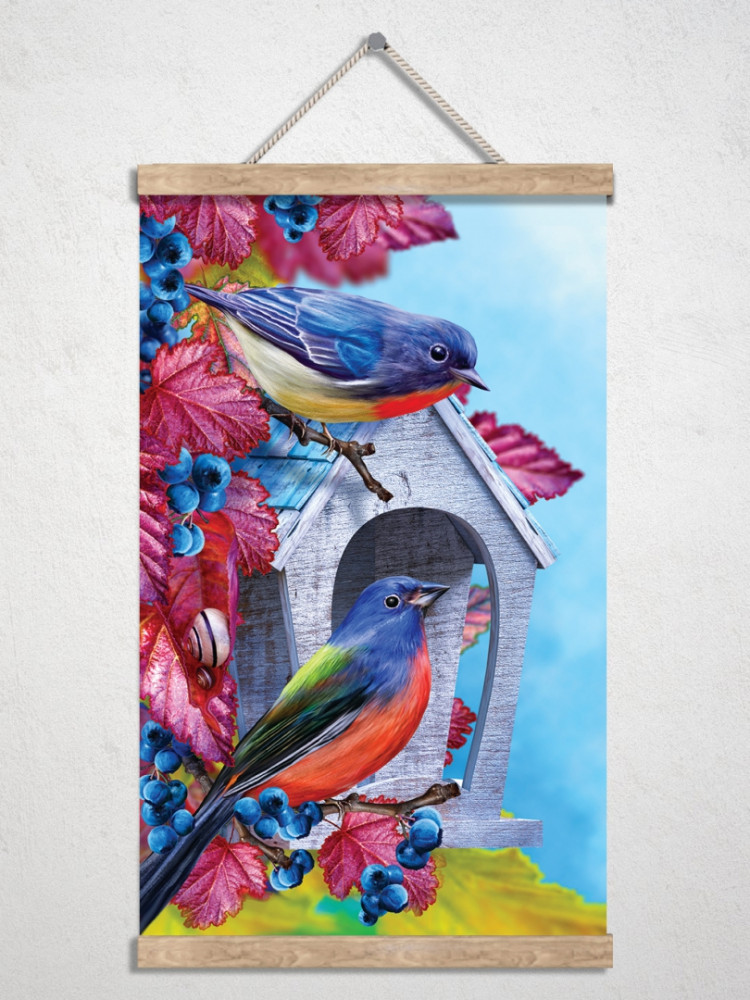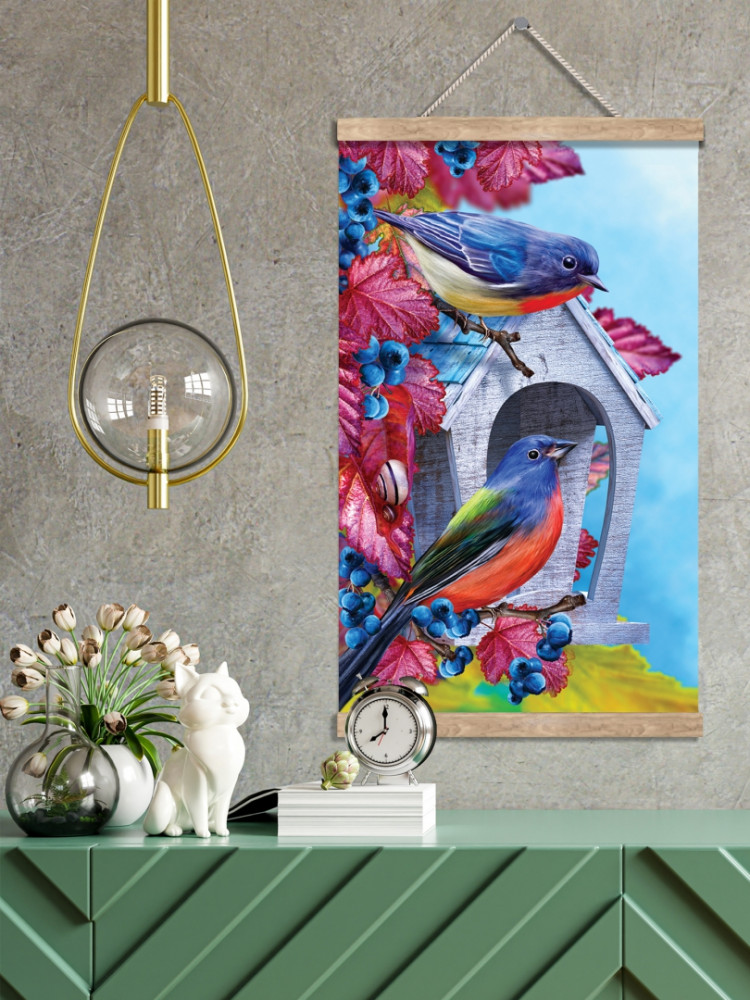Сюжет картины «Осенний скворечник» поднимет настроение в самый пасмурный день. А готовая работа станет оригинальным украшением любого интерьера.