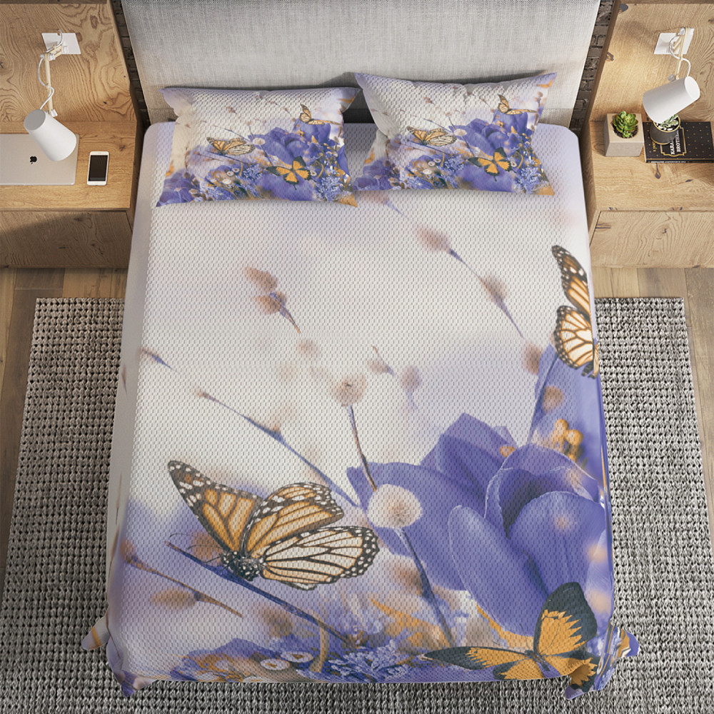 Ambesonne Набор из покрывала с наволочками «Райские бабочки»