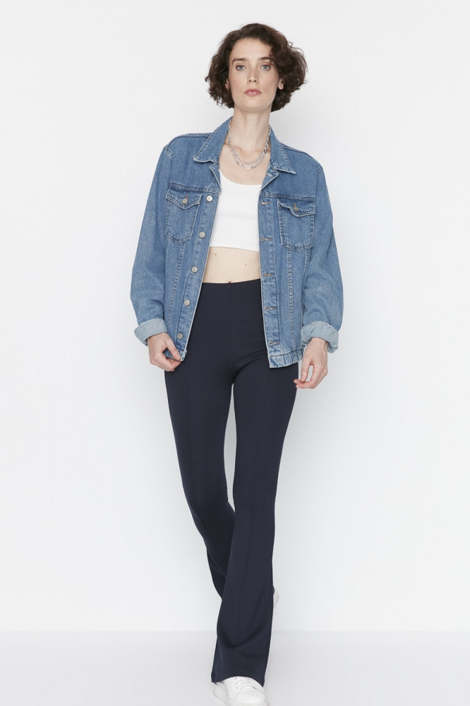 Ткань прикольная, как сказала дочь, обтягивающие, высокая посадка, понравились, оставили.Идут в размер, но у кого широковатые бёдра, лучше взять на размер больше