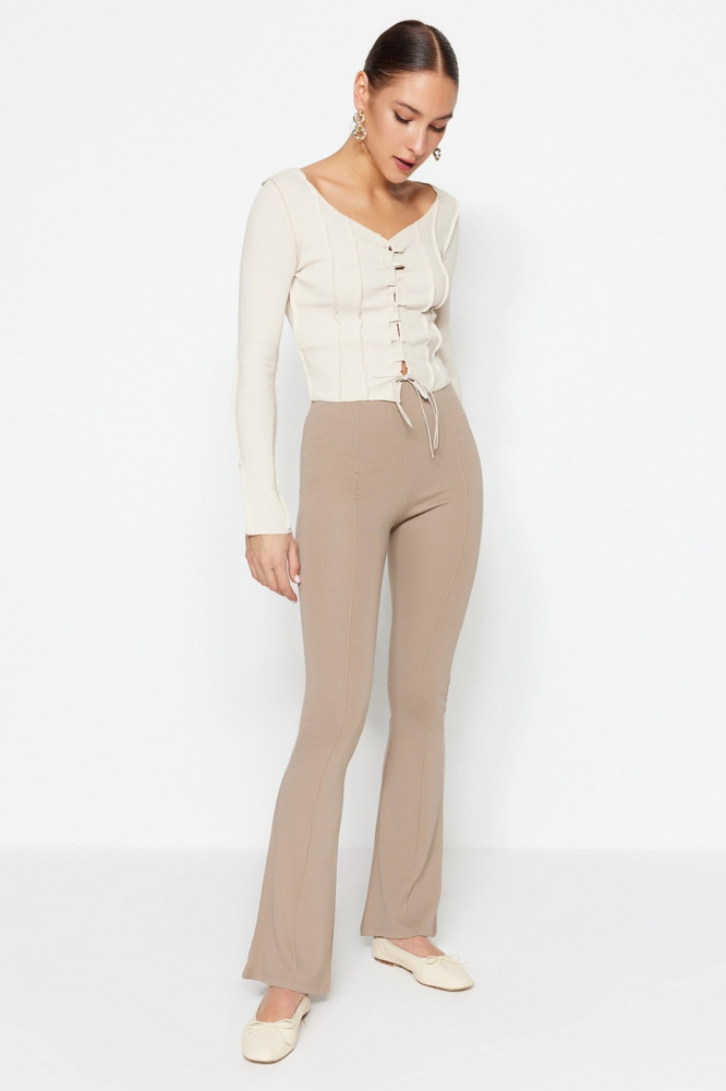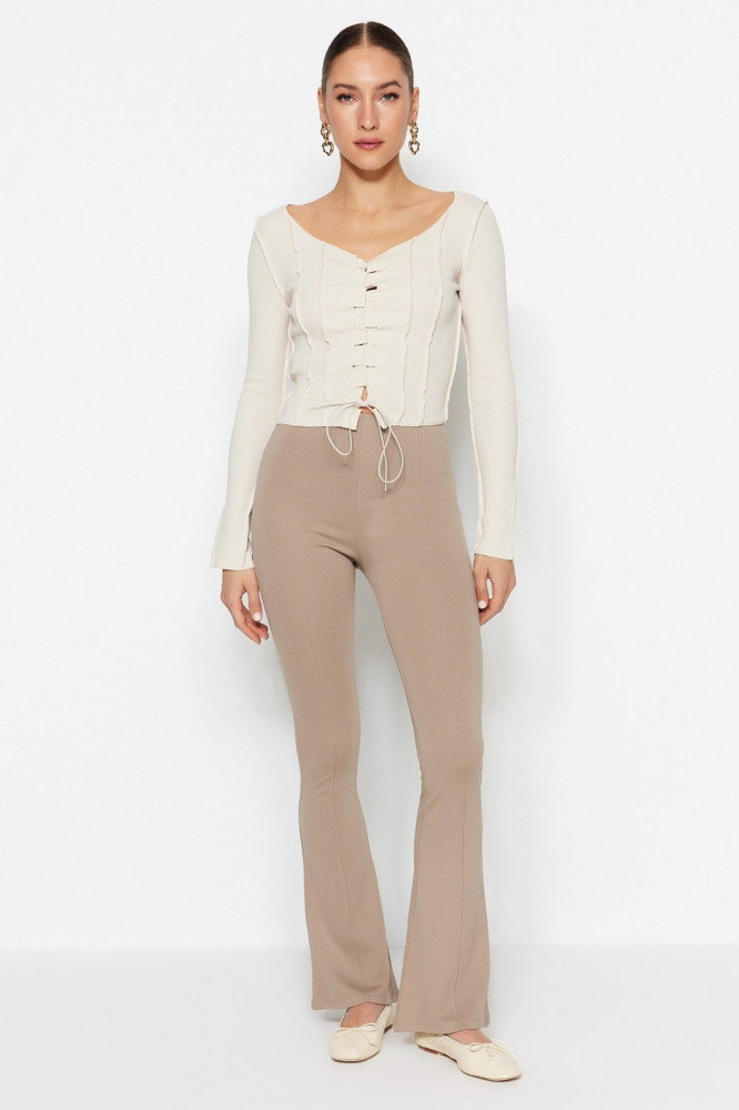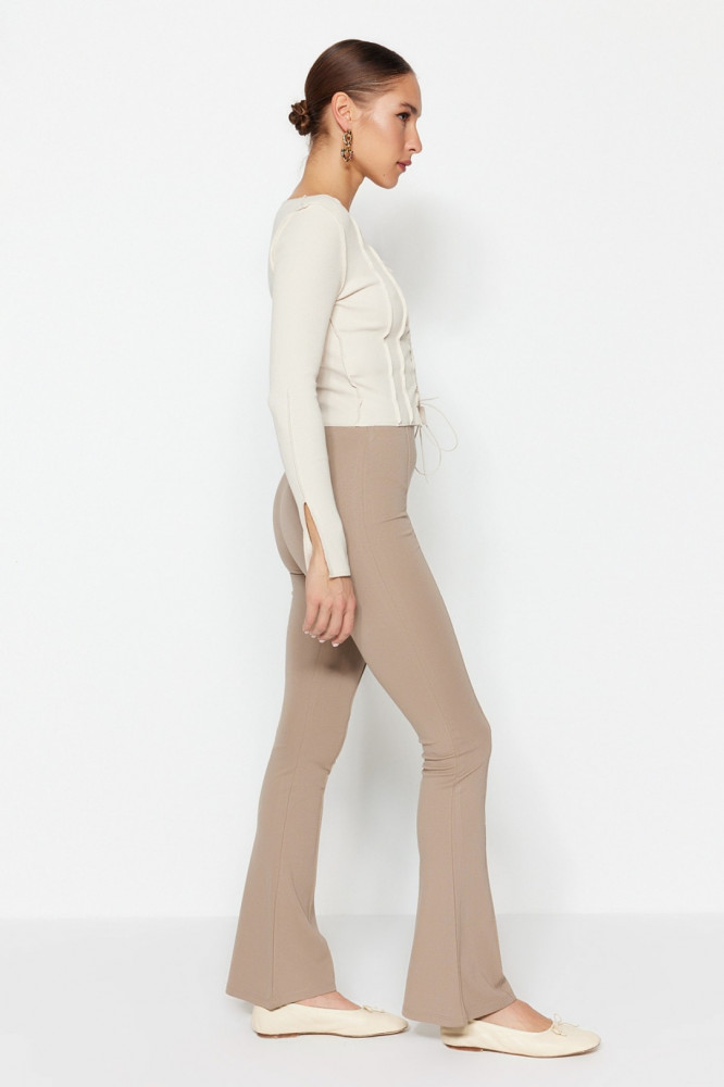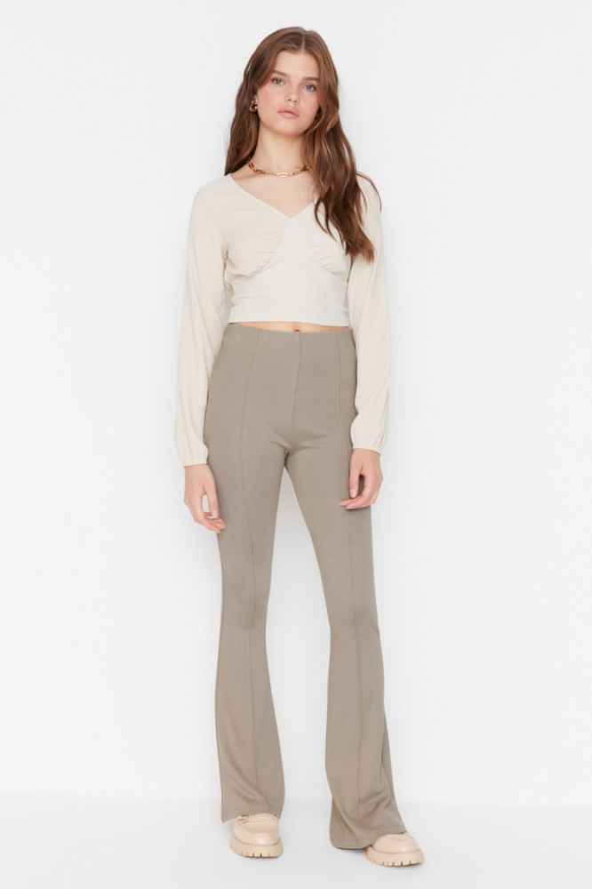 Женские брюки расклешенного силуэта на высокой посадке. Брюки полной длины смотрятся элегантно и утонченно. Идеальны для различных случаев, будь то рабочая встреча, вечер, или прогулка по городу.
